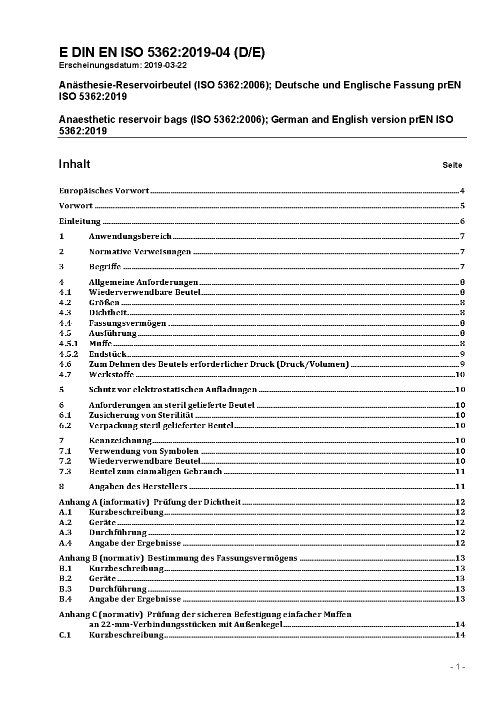 Anästhesie- und Beatmungsgeräte - Anästhesie-Reservoirbeutel (ISO/DIS 5362:2023); Deutsche und Englische Fassung prEN ISO 5362:2023