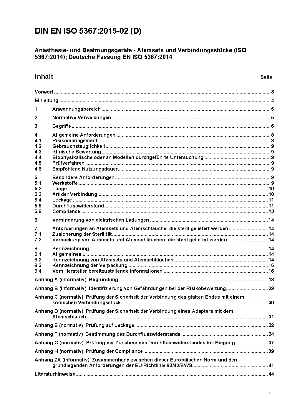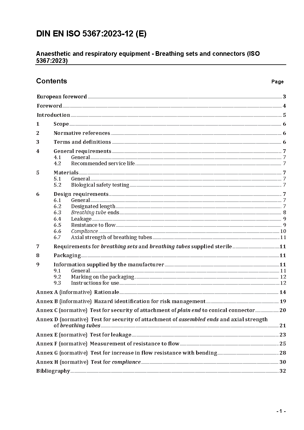 Anaesthetic and respiratory equipment - Breathing sets and connectors (ISO 5367:2023); German version EN ISO 5367:2023