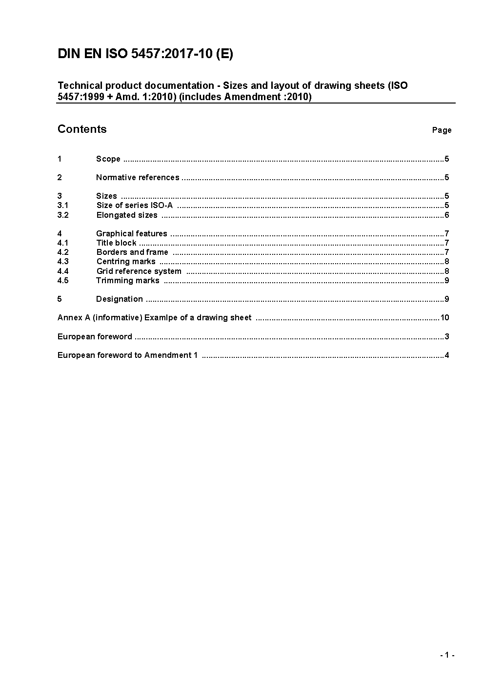 Technical product documentation - Sizes and layout of drawing sheets (ISO 5457:1999/DAM 1:2008); German version prEN ISO 5457:1999/prA1:2009