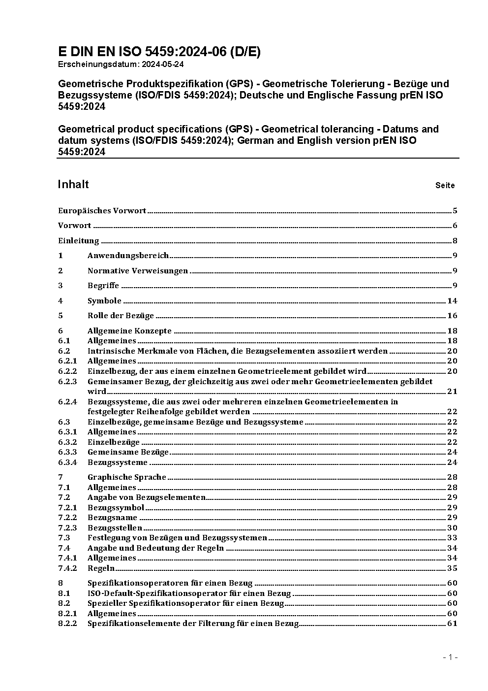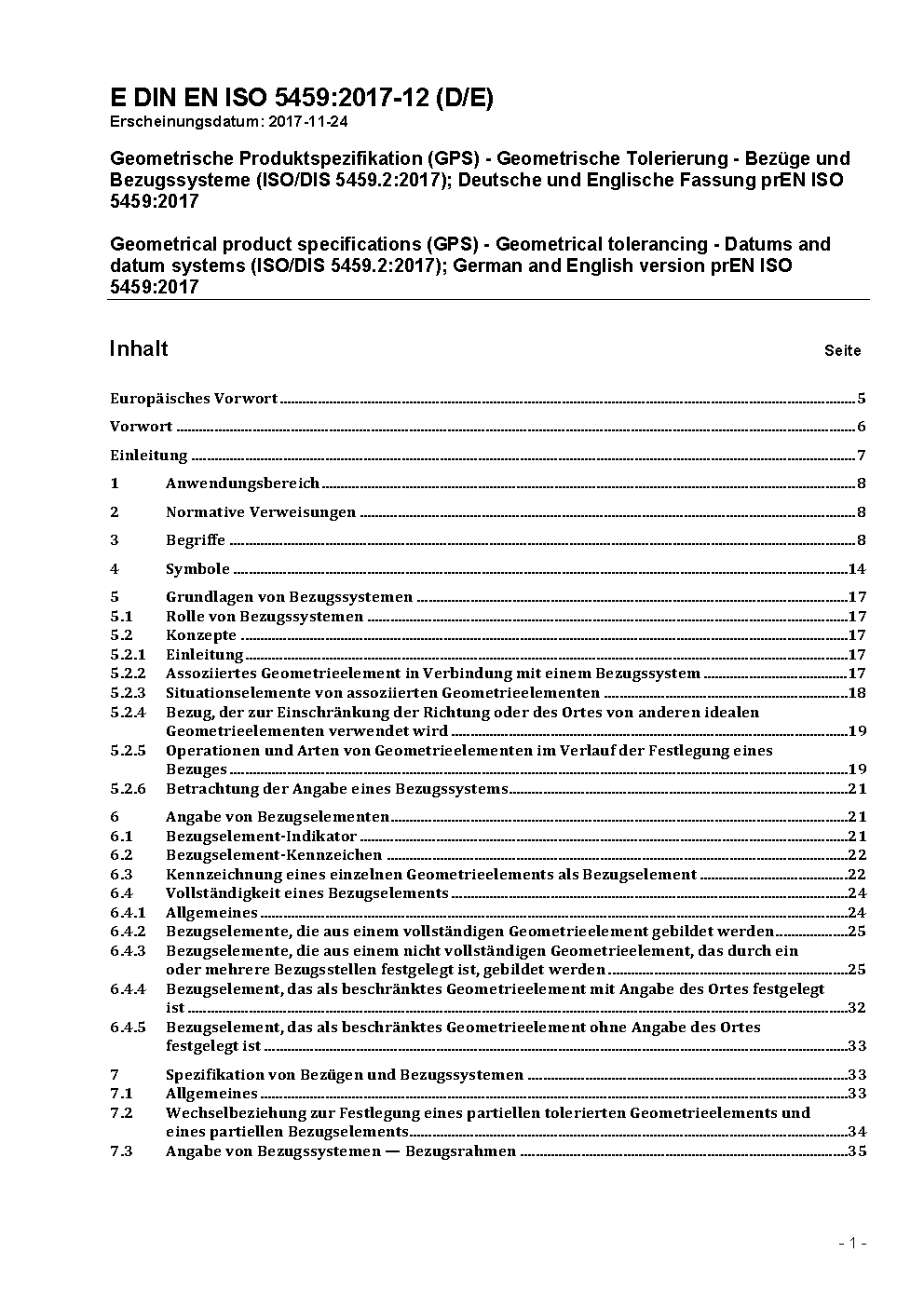 Geometrical product specifications (GPS) - Geometrical tolerancing - Datums and datum-systems (ISO/DIS 5459:2009); German version prEN ISO 5459:2009