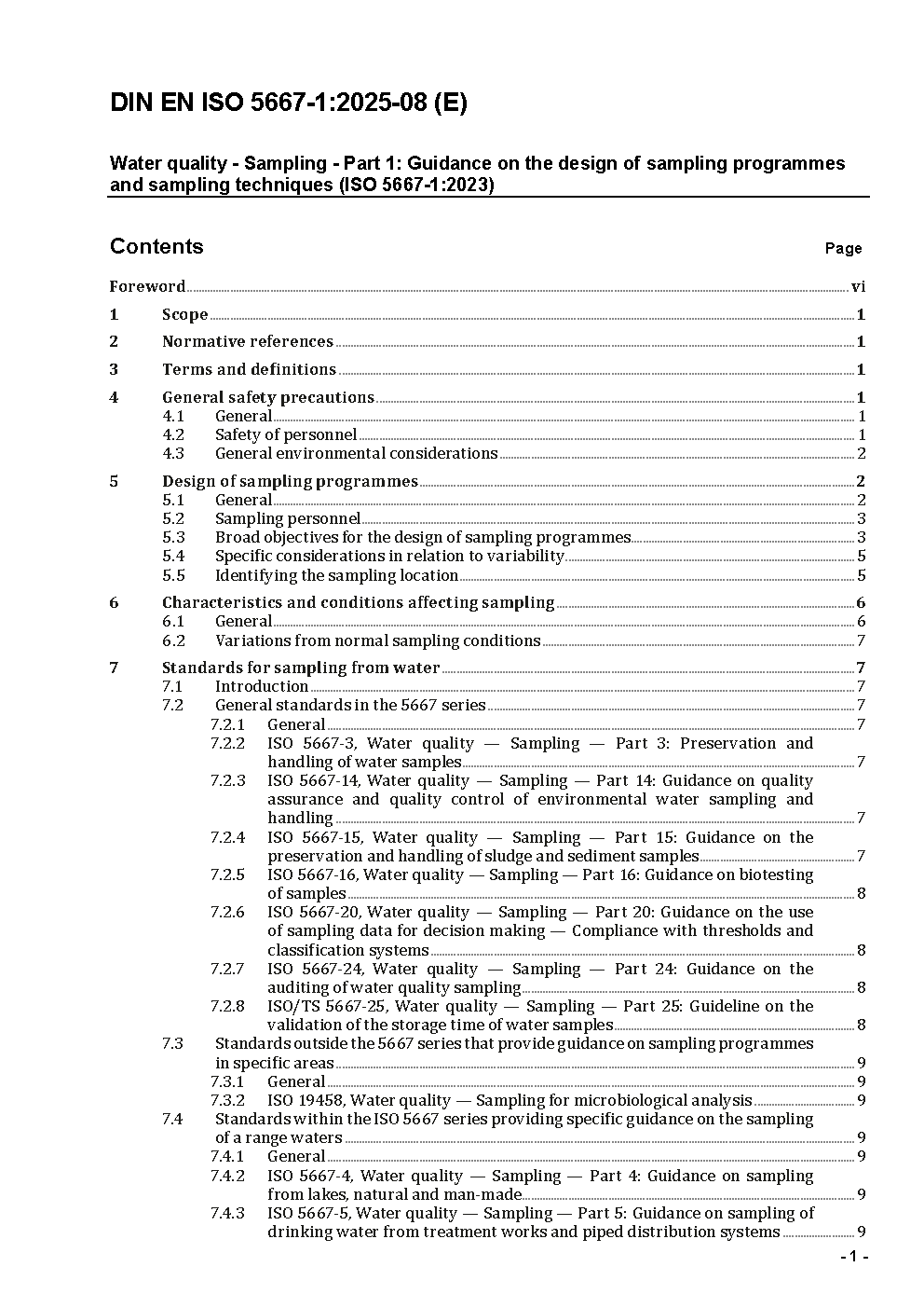 Water quality - Sampling - Part 1: Guidance on the design of sampling programmes and sampling techniques (ISO 5667-1:2020); German version EN ISO 5667-1:2022