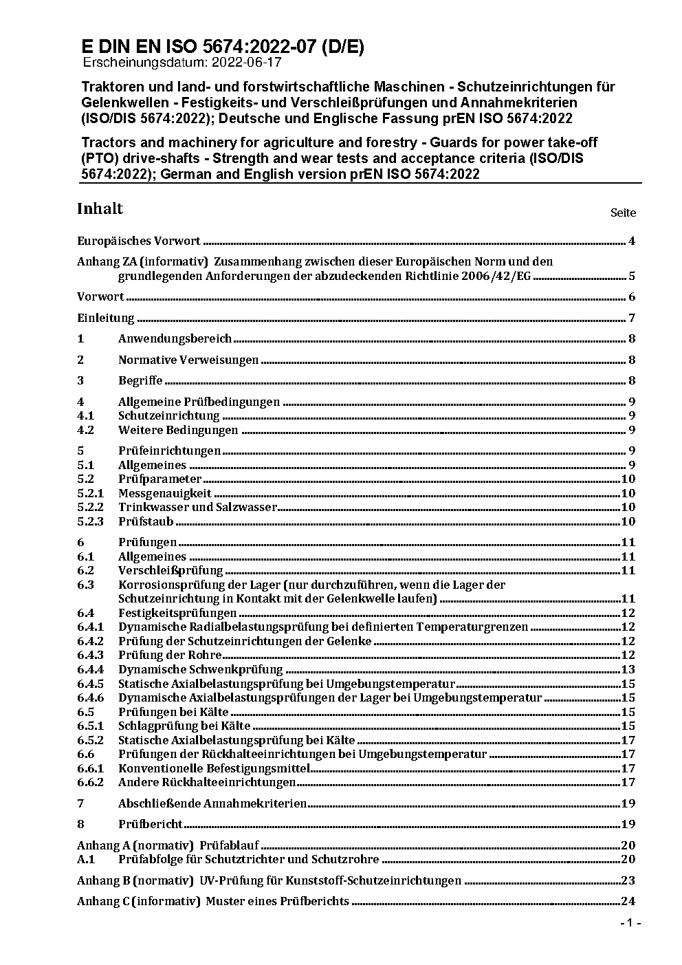 Traktoren und land- und forstwirtschaftliche Maschinen - Schutzeinrichtungen für Gelenkwellen - Festigkeits- und Verschleißprüfungen und Annahmekriterien (ISO 5674:2004); Deutsche Fassung EN ISO 5674:2004