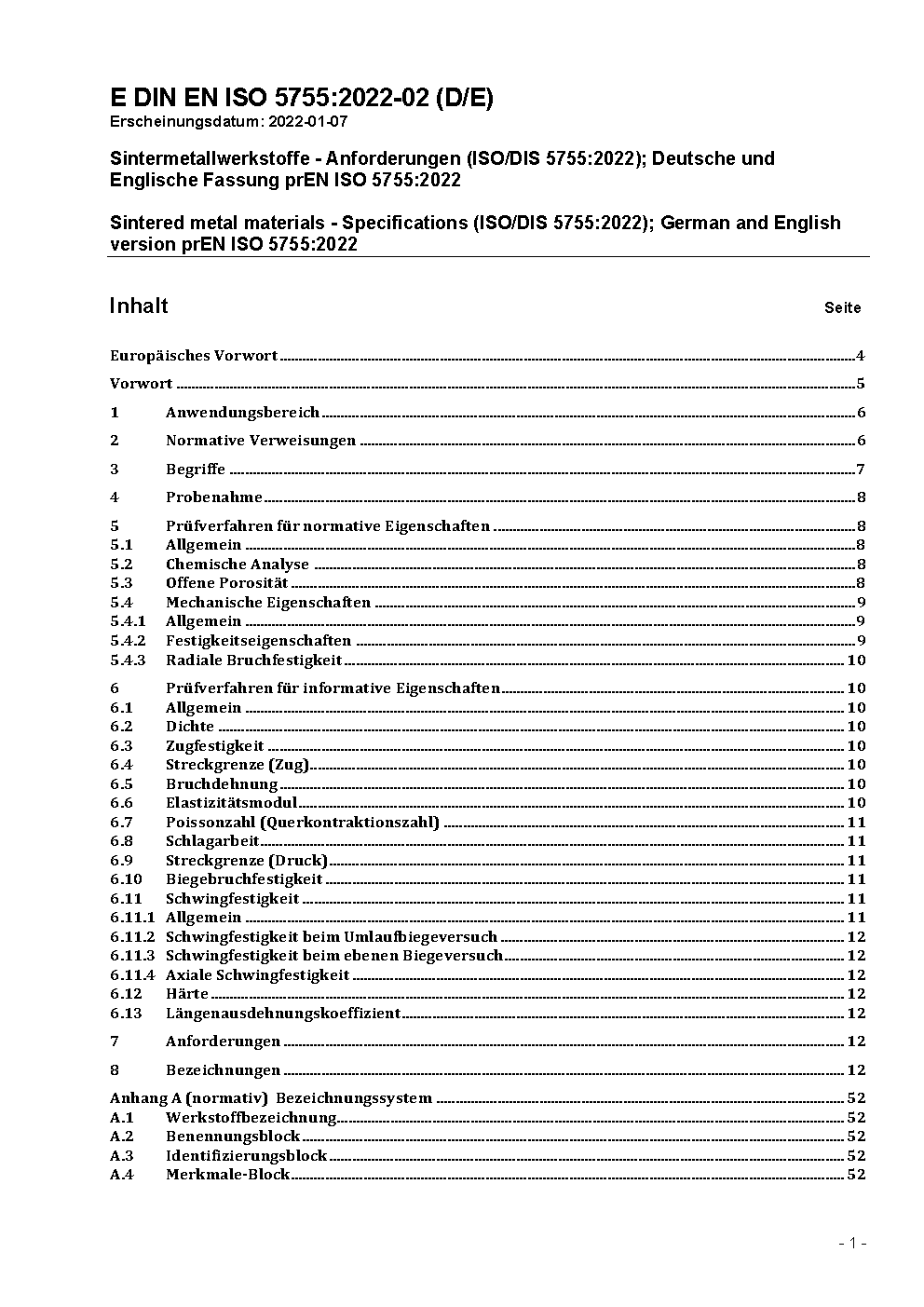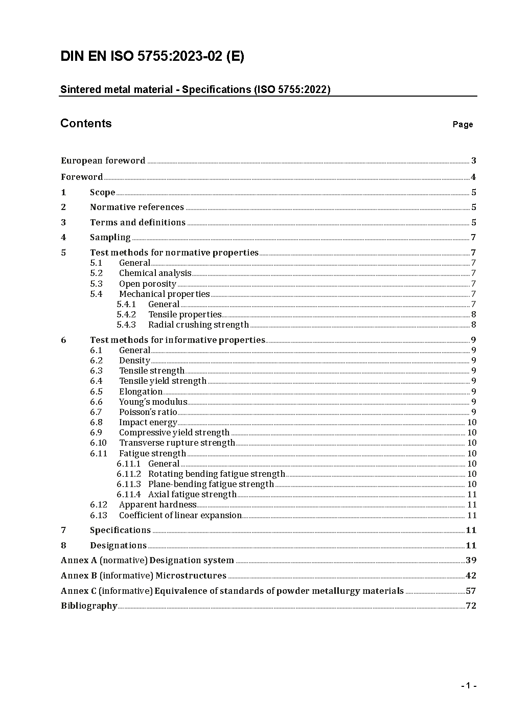 Sintered metal materials - Specifications (ISO 5755:2012); German version EN ISO 5755:2012