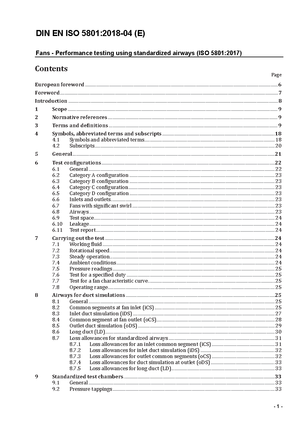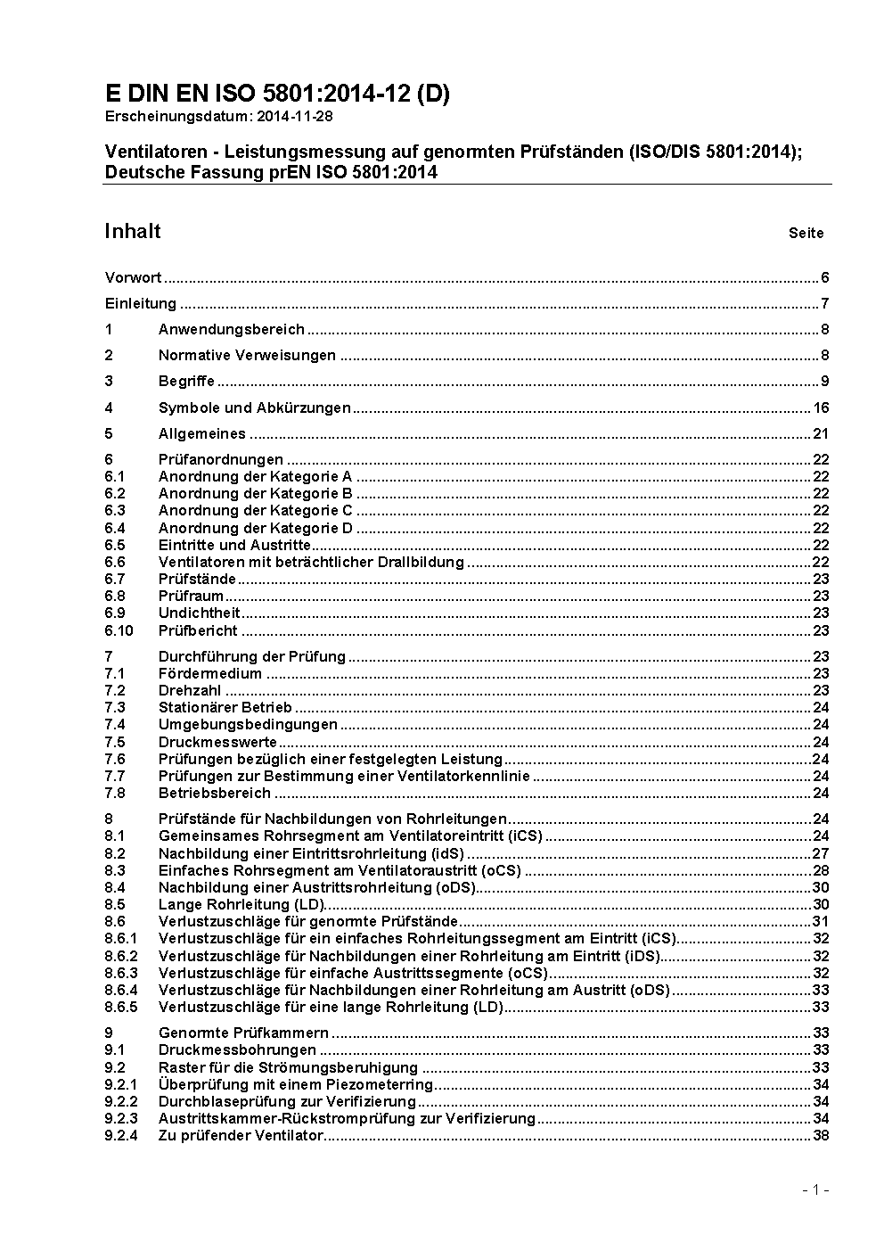 Ventilatoren - Leistungsmessung auf genormten Prüfständen - Änderung 1 (ISO 5801:2017/DAM 1:2024); Deutsche und Englische Fassung EN ISO 5801:2017/prA1:2024