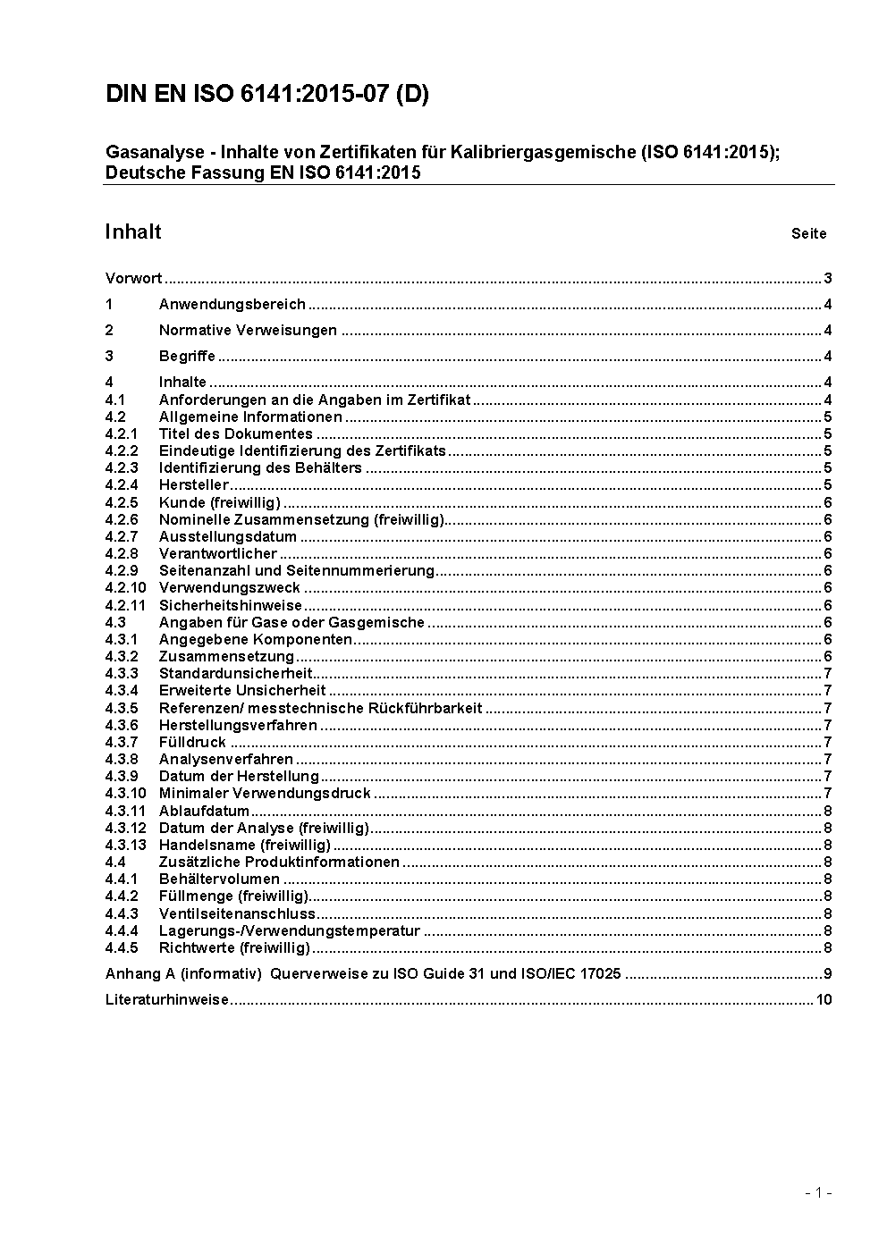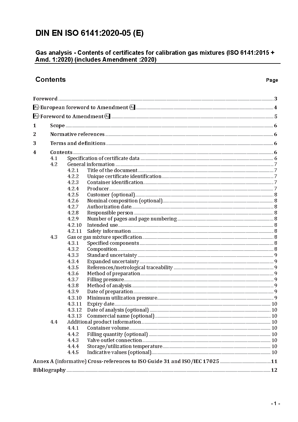 Gas analysis - Requirements for certificates for calibration gases and gas mixtures (ISO 6141:2000); German version EN ISO 6141:2006