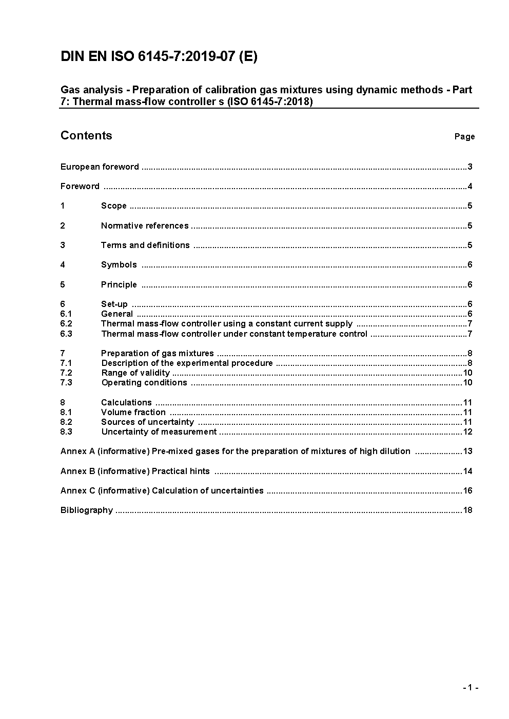 Gas analysis - Preparation of calibration gas mixtures using dynamic methods - Part 7: Thermal mass-flow controllers (ISO 6145-7:2018); German version EN ISO 6145-7:2018