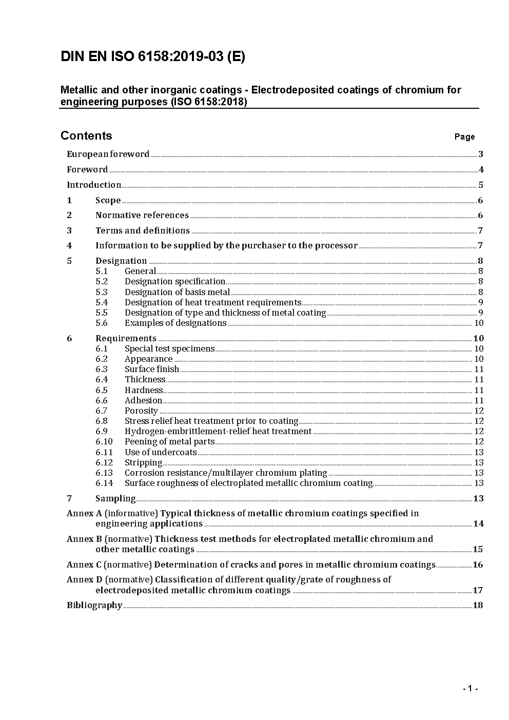 Metallic and other inorganic coatings - Electrodeposited coatings of chromium for engineering purposes (ISO/DIS 6158:2017); German and English version prEN ISO 6158:2017
