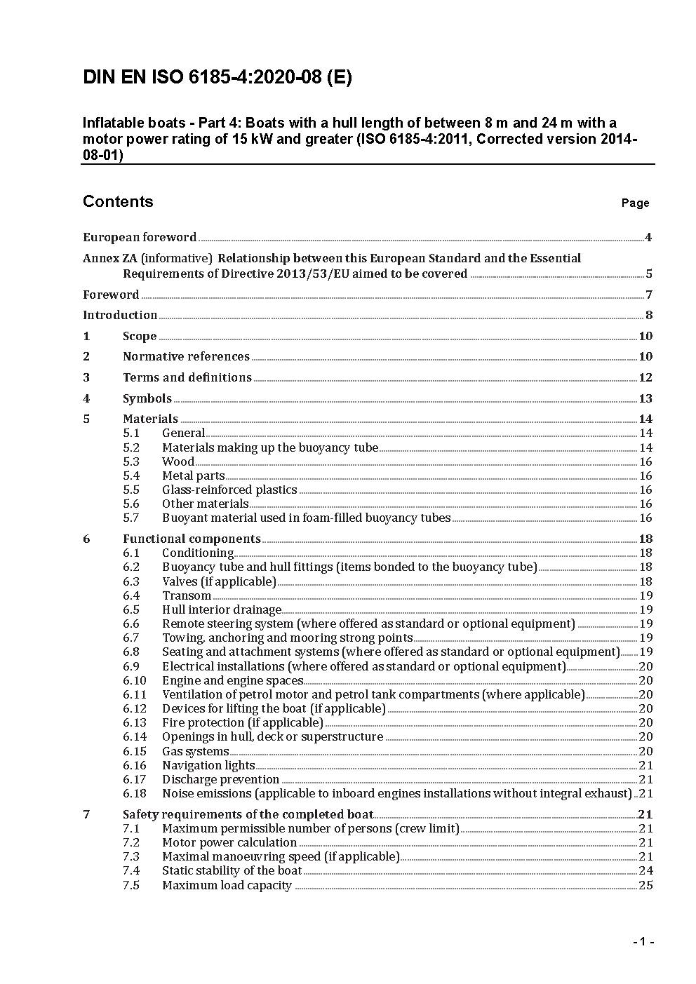 Aufblasbare Boote - Teil 4: Boote mit einer Gesamtlänge zwischen 8 m und 24 m mit einer Motorleistung von 15 kW und mehr (ISO 6185-4:2011); Deutsche Fassung EN ISO 6185-4:2011
