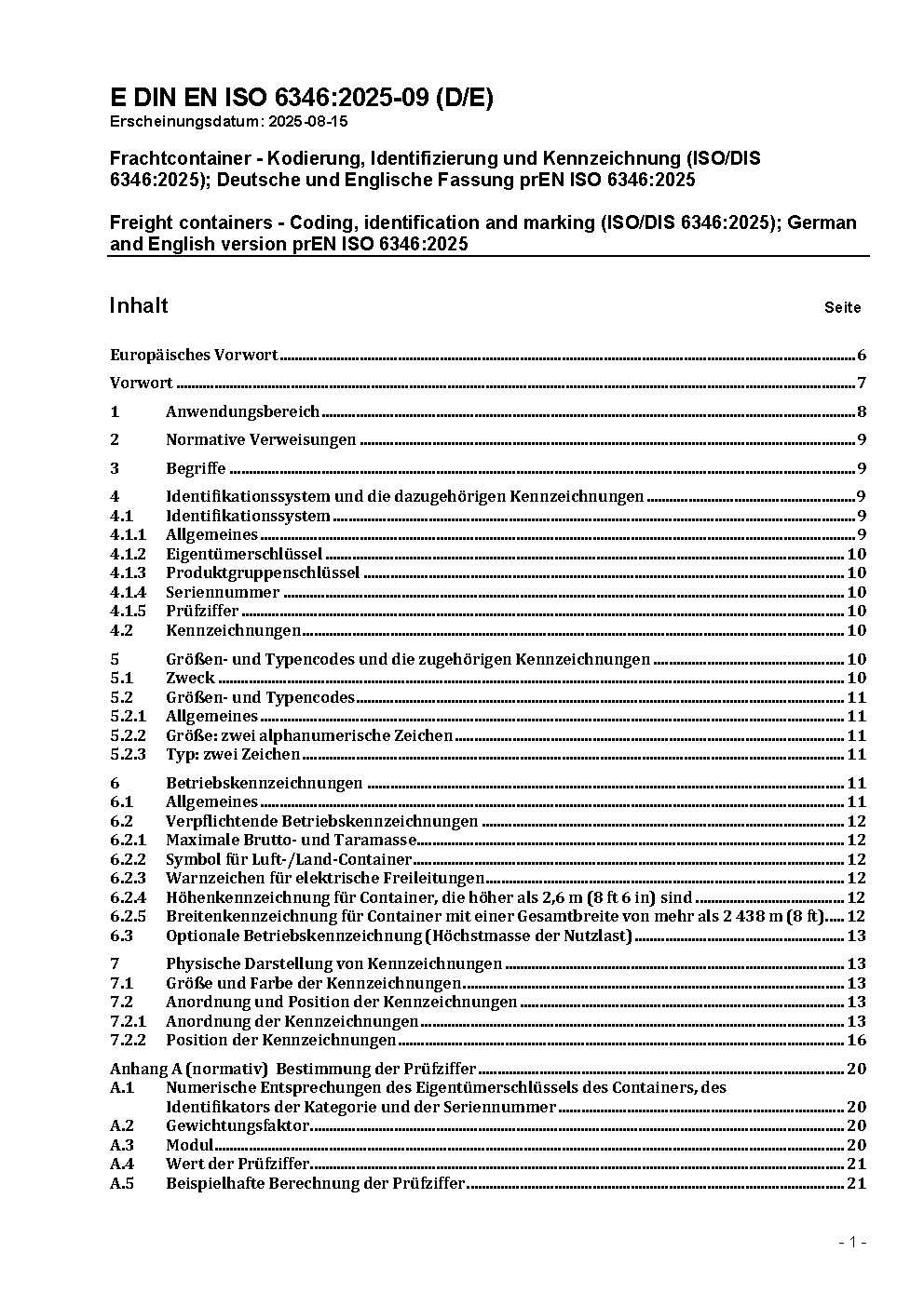 ISO-Container - Kodierung, Identifizierung und Kennzeichnung (ISO 6346:1995); Deutsche Fassung EN ISO 6346:1995