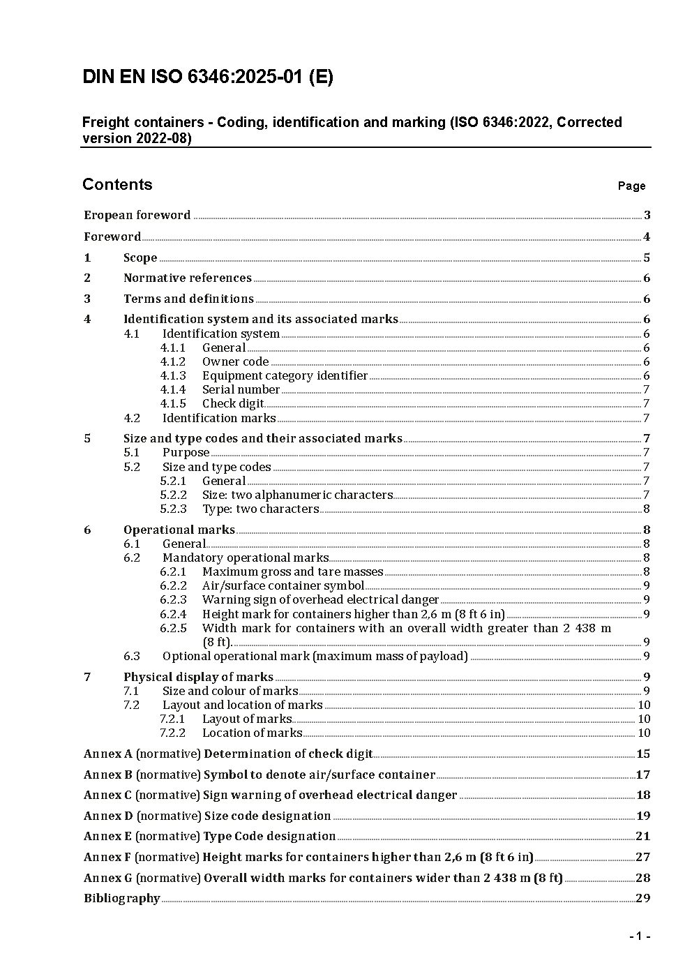 Freight containers - Coding, identification and marking (ISO 6346:1995); German version EN ISO 6346:1995