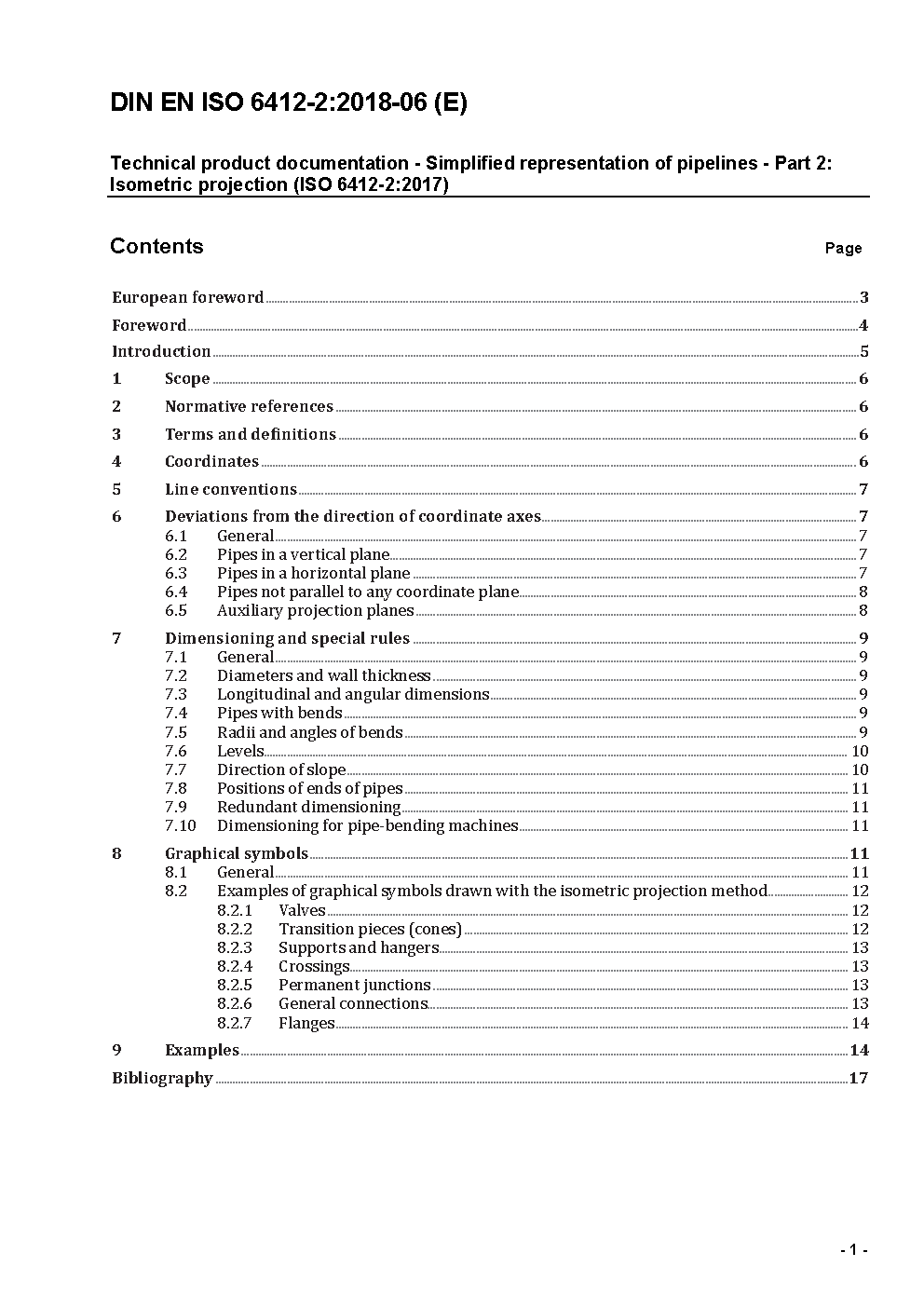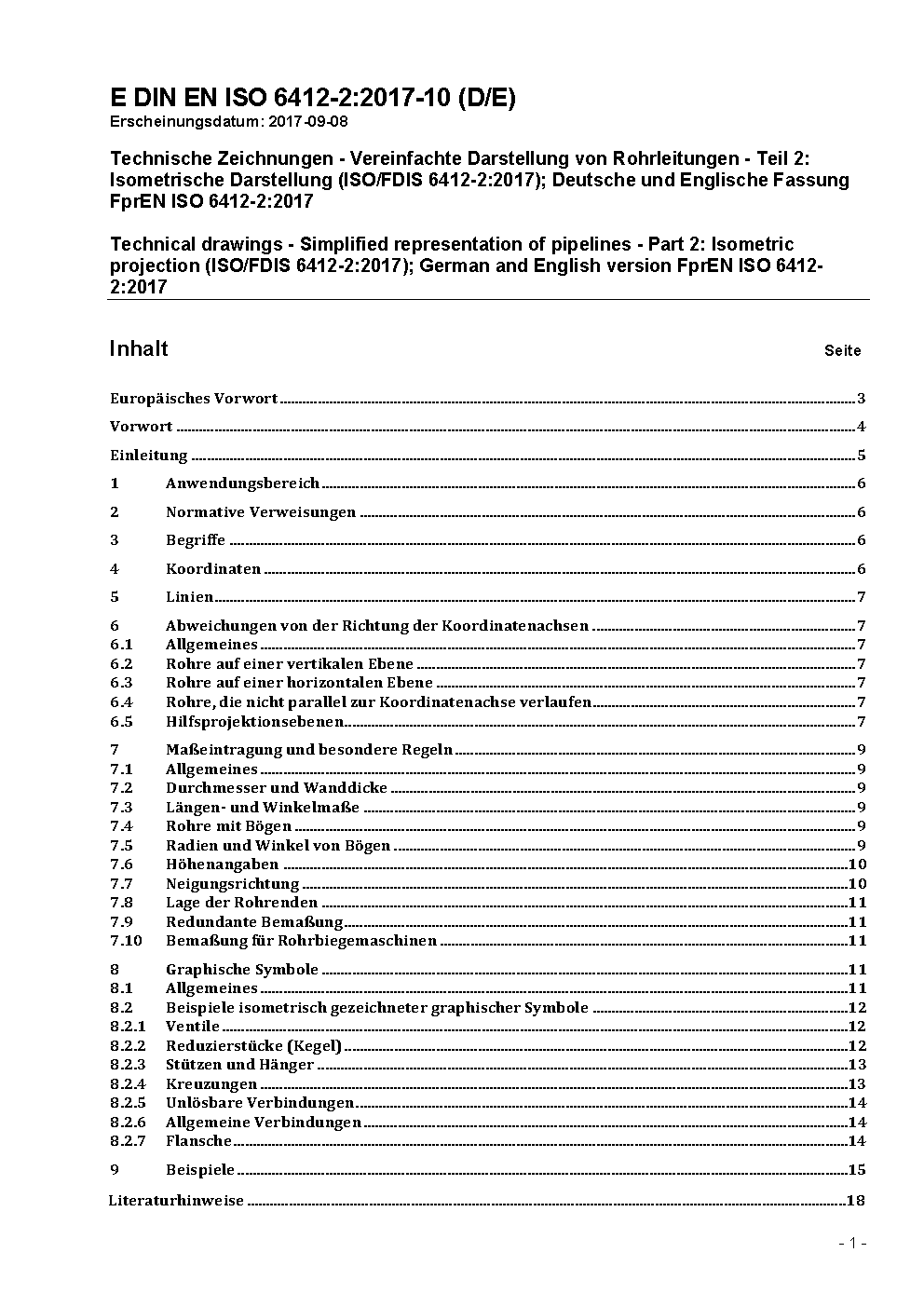 Technical drawings - Simplified representation of pipelines - Part 2: Isometric projection (ISO/FDIS 6412-2:2017); German and English version FprEN ISO 6412-2:2017