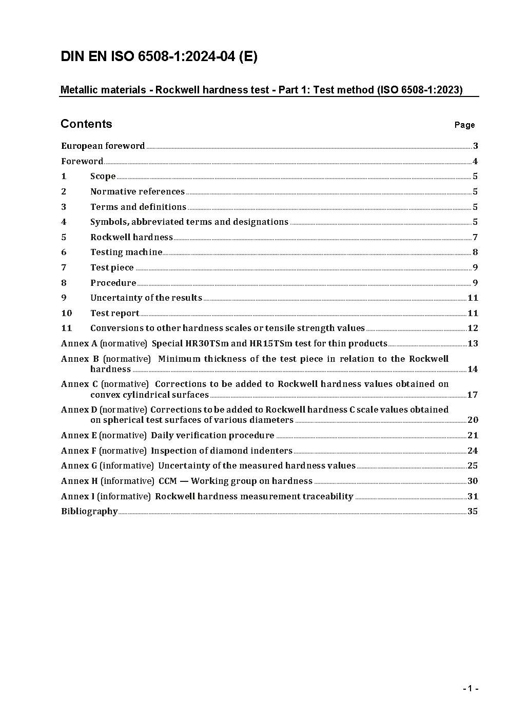 Metallic materials - Rockwell hardness test - Part 1: Test method (ISO 6508-1:2016); German version EN ISO 6508-1:2016