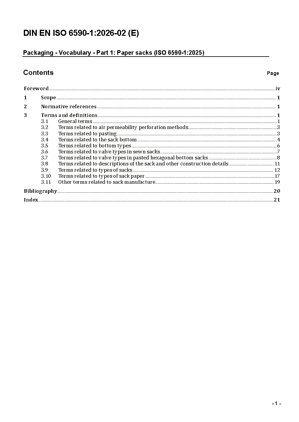Packaging - Terminology - Part 1: Paper sacks (ISO/DIS 6590-1:2024); German and English version prEN ISO 6590-1:2024