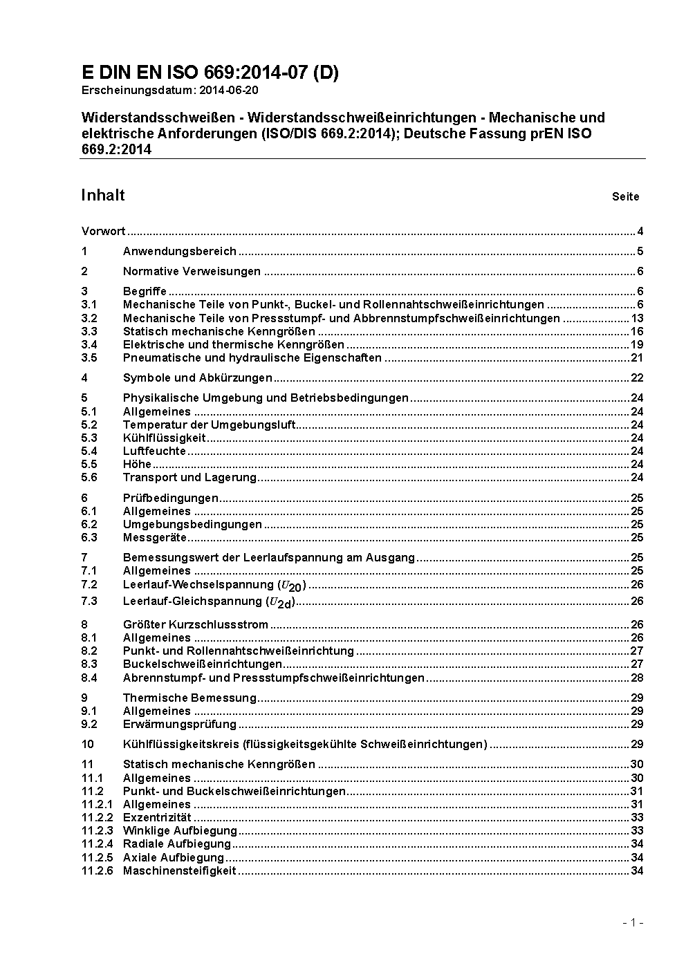 Widerstandsschweißen - Widerstandsschweißeinrichtungen - Mechanische und elektrische Anforderungen (ISO 669:2016); Deutsche Fassung EN ISO 669:2016