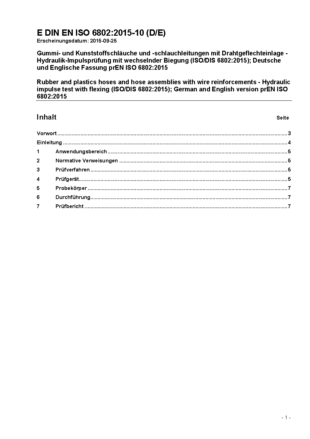 Rubber and plastics hoses and hose assemblies with wire reinforcements - Hydraulic impulse test with flexing (ISO/DIS 6802.2:2017); German and English version prEN ISO 6802:2017