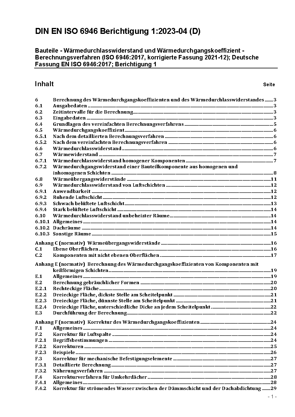 Bauteile - Wärmedurchlasswiderstand und Wärmedurchgangskoeffizient - Berechnungsverfahren (ISO 6946:2007); Deutsche Fassung EN ISO 6946:2007