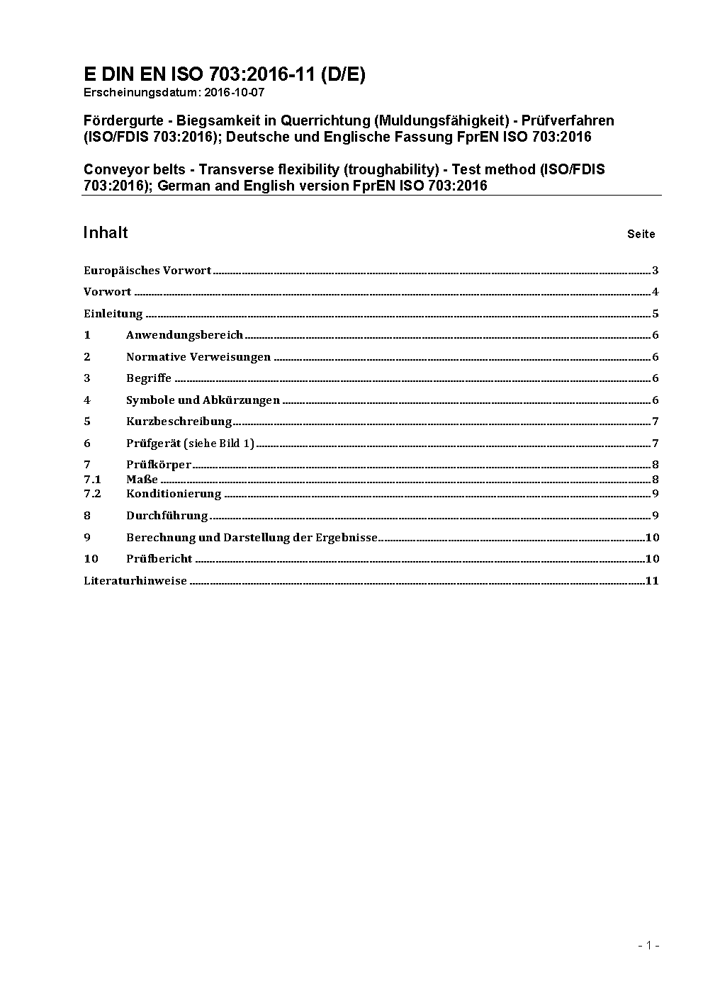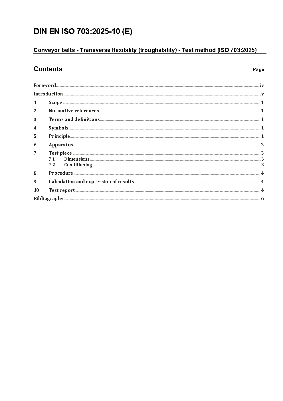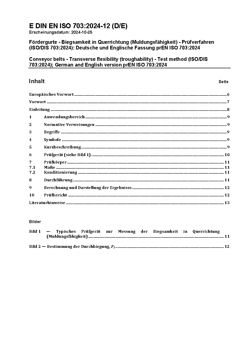 Fördergurte - Biegsamkeit in Querrichtung (Muldungsfähigkeit) - Prüfverfahren (ISO 703:2007); Deutsche Fassung EN ISO 703:2007