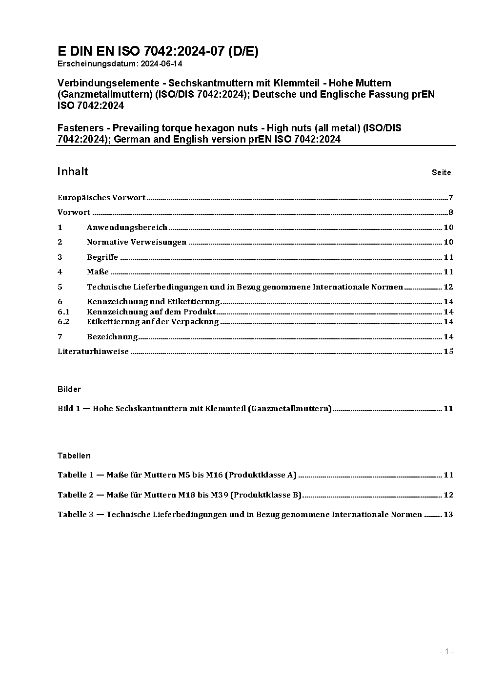 Hohe Sechskantmuttern mit Klemmteil (Ganzmetallmuttern) - Festigkeitsklassen 5, 8, 10 und 12 (ISO 7042:2012); Deutsche Fassung EN ISO 7042:2012