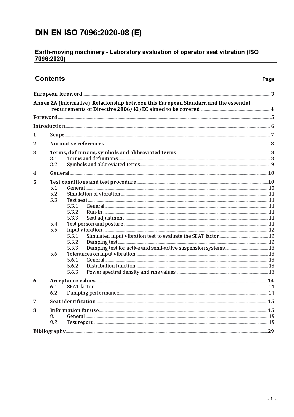 Erdbaumaschinen - Laborverfahren zur Bewertung der Schwingungen des Maschinenführersitzes (ISO 7096:2020); Deutsche Fassung EN ISO 7096:2020