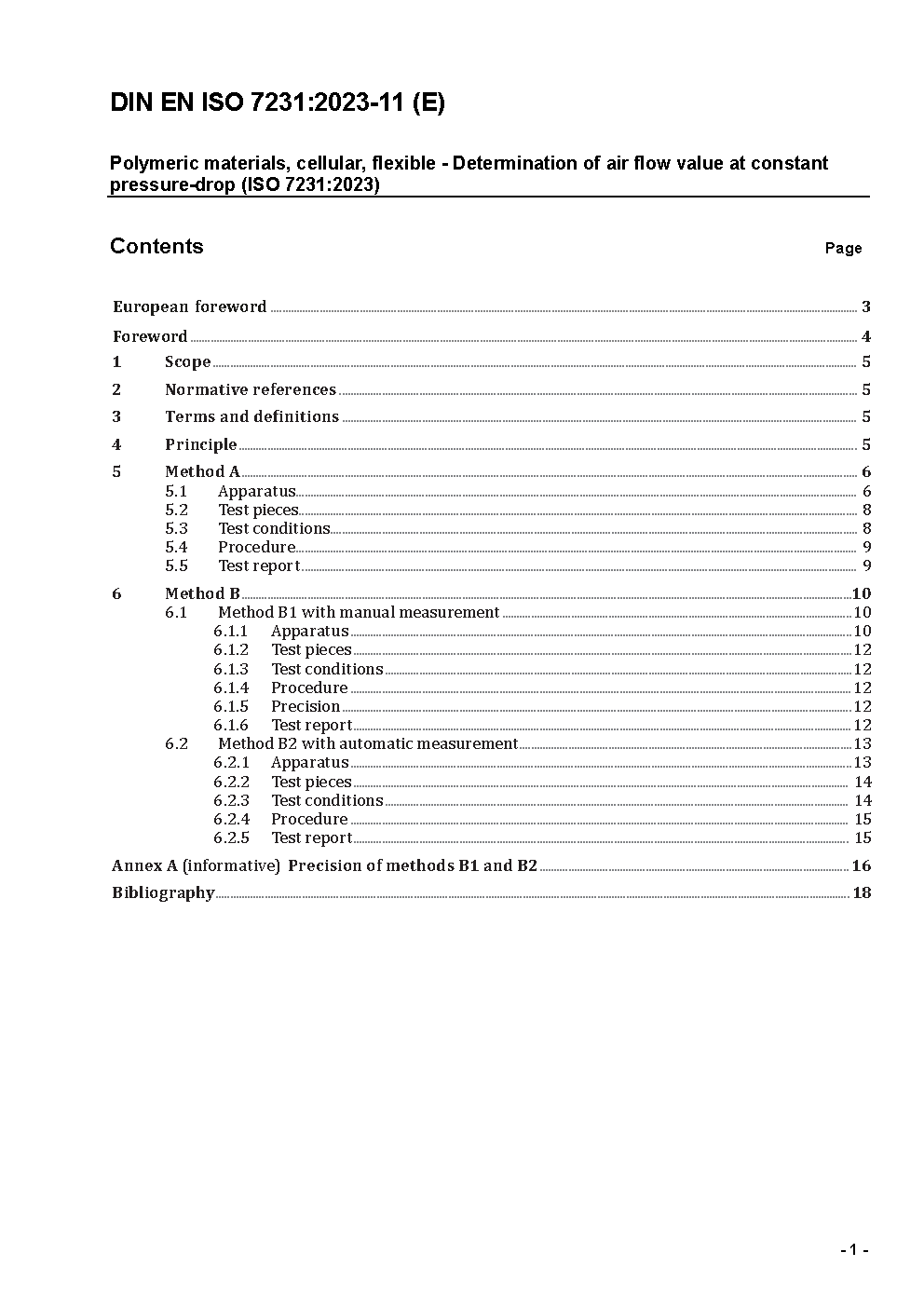 Polymeric materials, cellular, flexible - Determination of air flow value at constant pressure-drop (ISO 7231:2010); German version EN ISO 7231:2010