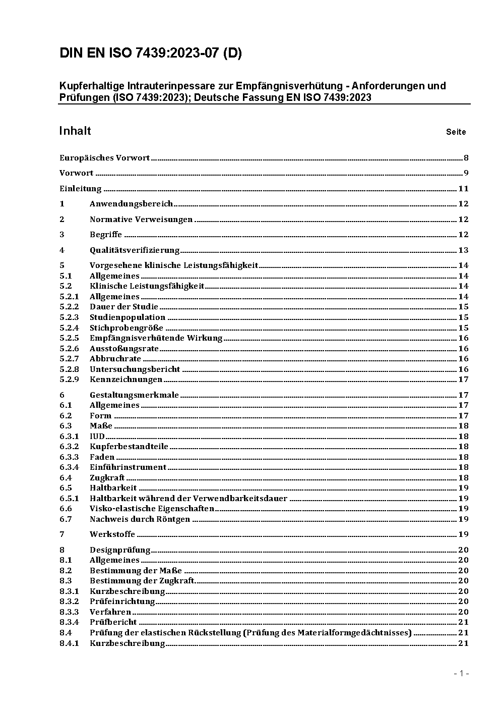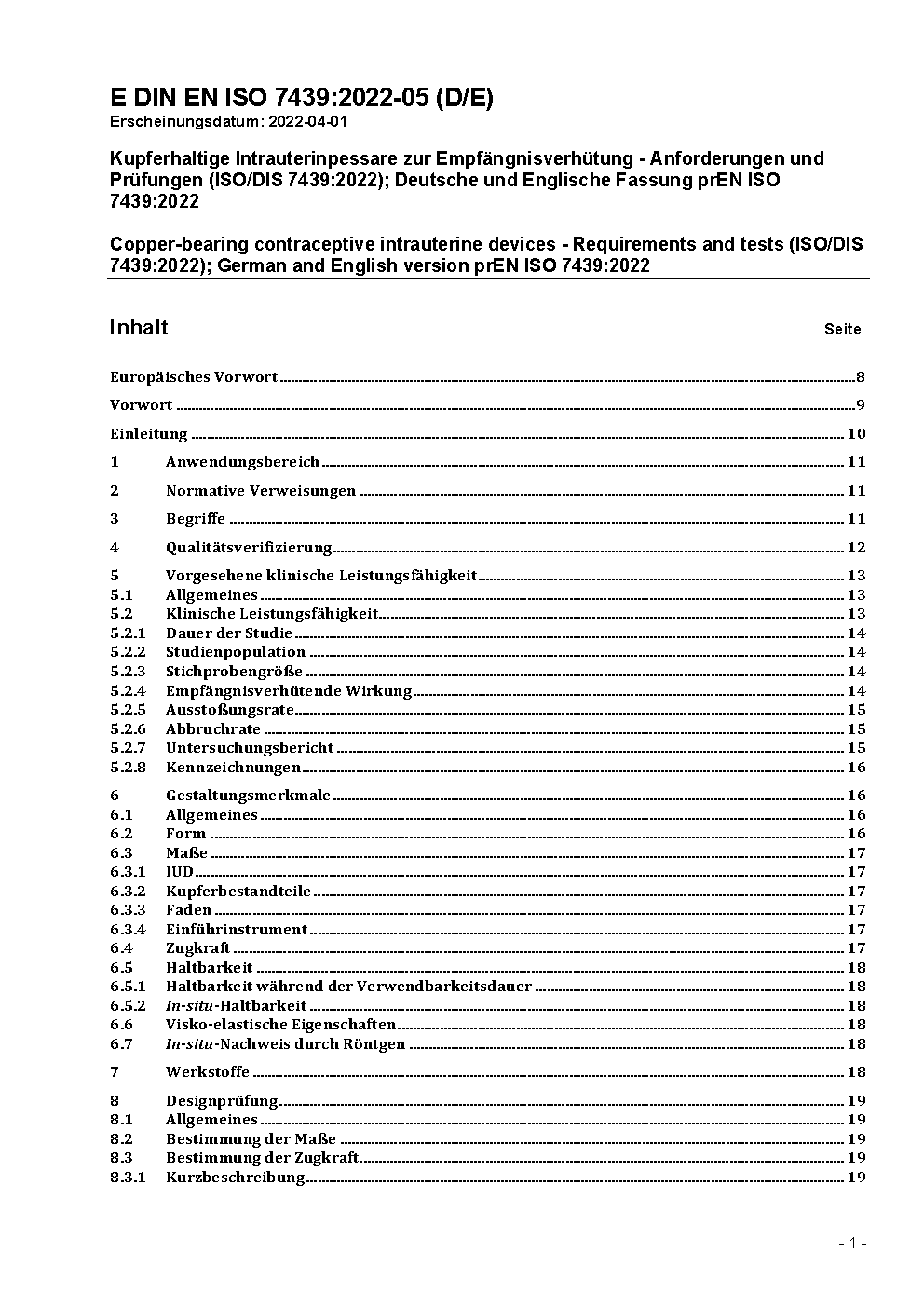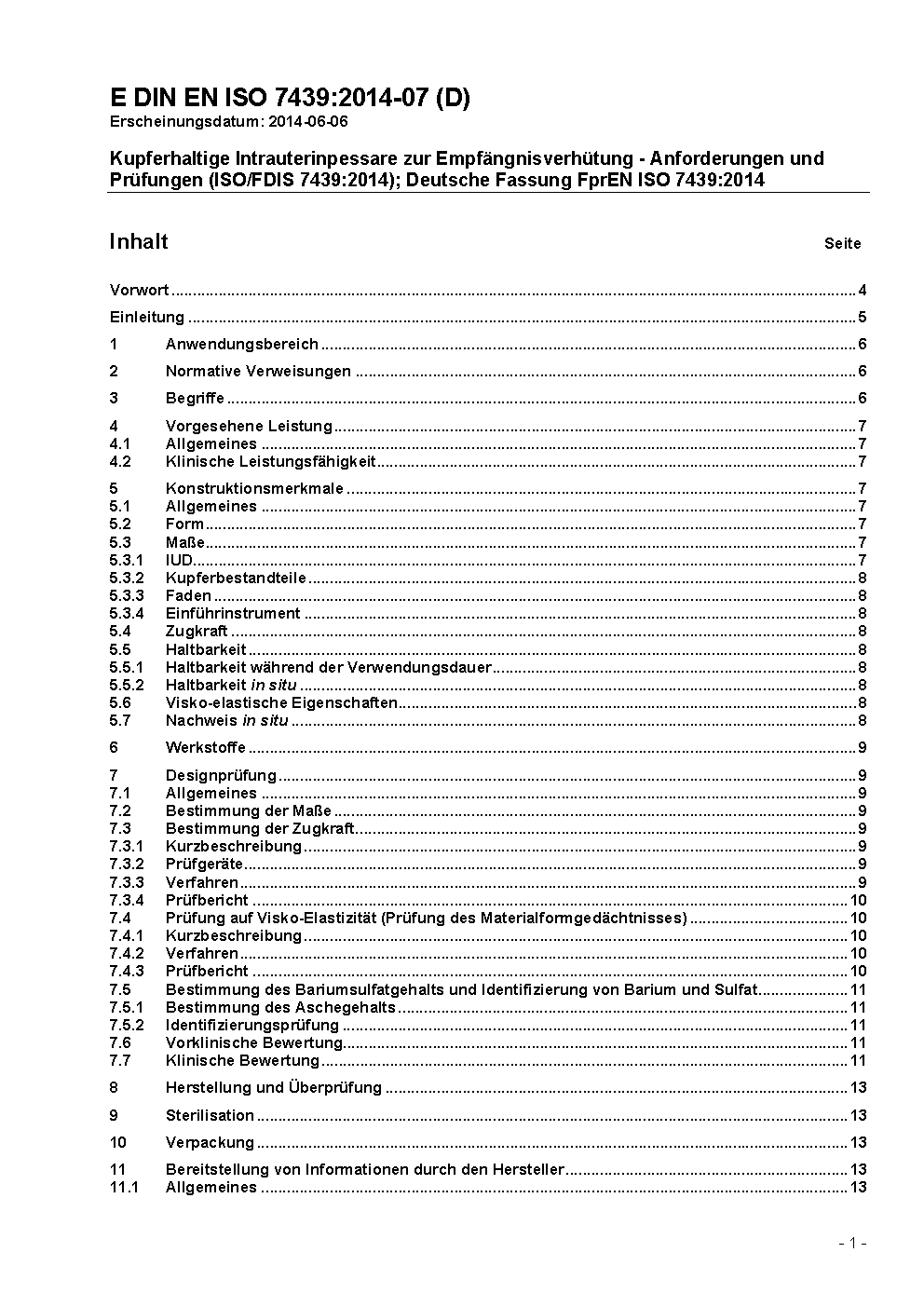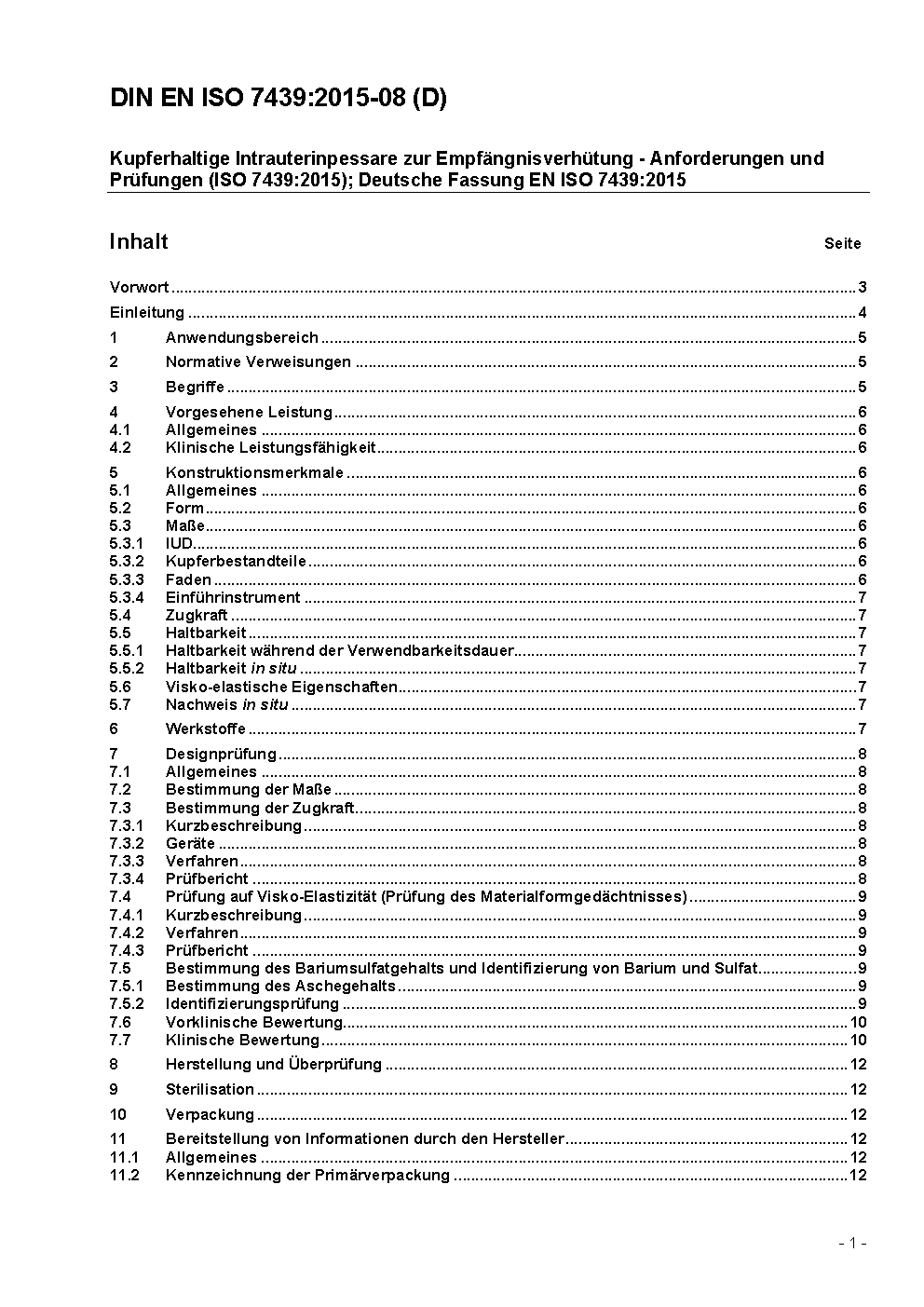 Kupferhaltige Intrauterinpessare zur Empfängnisverhütung - Anforderungen, Prüfung (ISO 7439:2002); Deutsche Fassung EN ISO 7439:2002