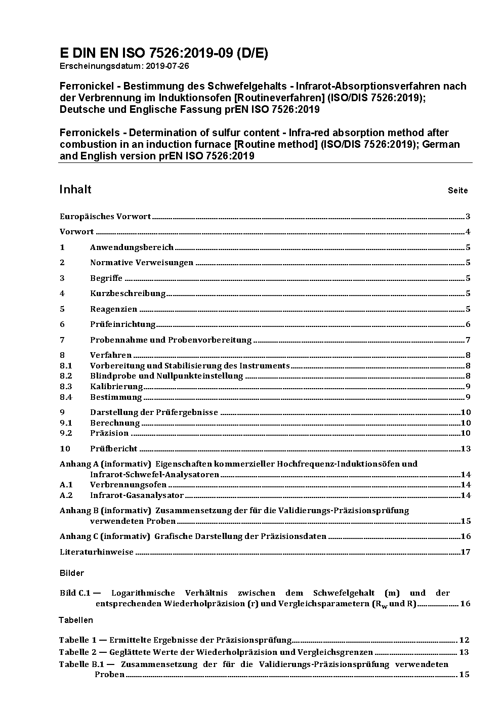 Ferronickels - Determination of sulfur content - Infrared absorption method after induction furnace combustion (ISO 7526:2020); German version EN ISO 7526:2020
