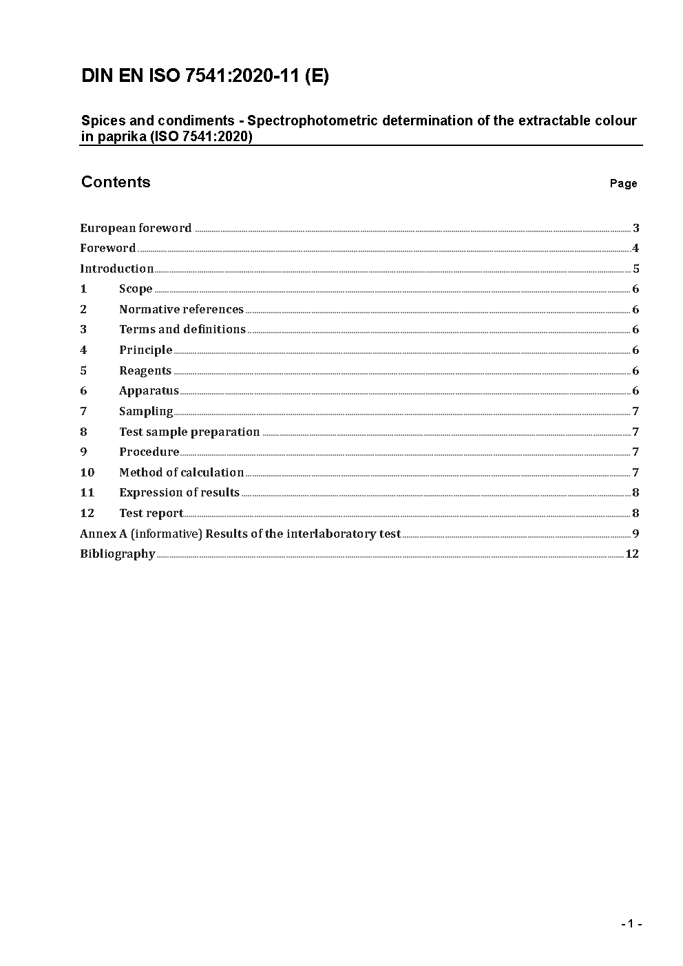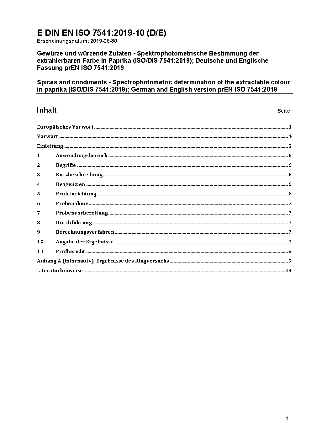 Gemahlener (pulverisierter) Paprika - Bestimmung des vollständigen Gehalts an natürlichen, färbenden Substanzen (ISO 7541:1989); Deutsche Fassung EN ISO 7541:2010
