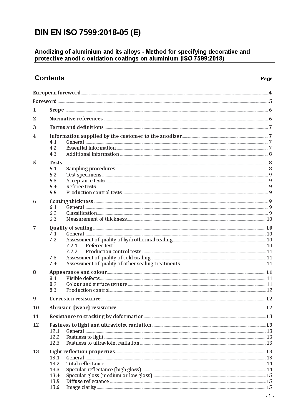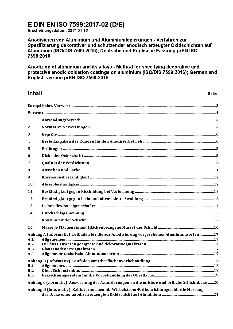 Anodizing of aluminium and its alloys - General specifications for anodic oxidation coatings on aluminium (ISO 7599:2010); German version EN ISO 7599:2010