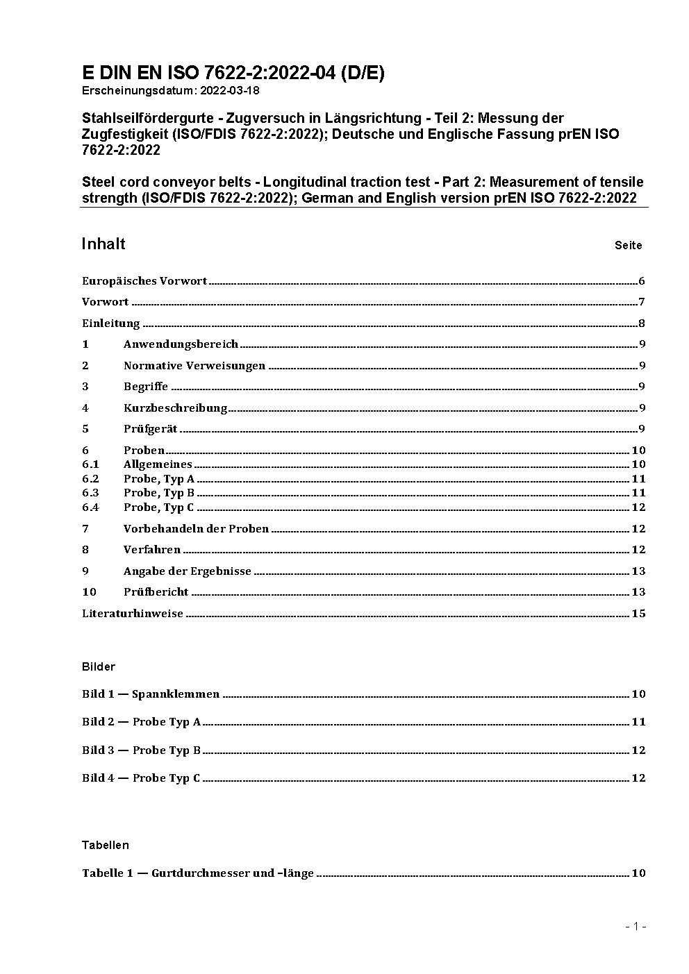Steel cord conveyor belts - Longitudinal traction test - Part 2: Measurement of tensile strength (ISO 7622-2:1984); German version EN ISO 7622-2:1995
