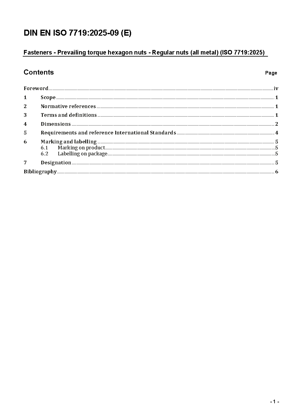 Prevailing torque type (all-metal hexagon nuts), style 1 - Property classes 5, 8 and 10 (ISO 7719:1997); German version EN ISO 7719:1997