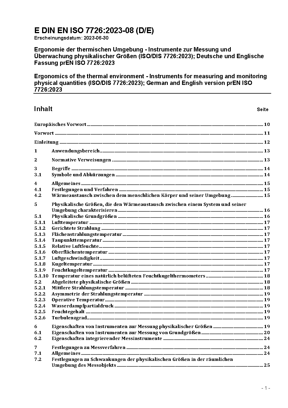 Ergonomics of the thermal environment - Instruments for measuring and monitoring physical quantities (ISO/DIS 7726:2023); German and English version prEN ISO 7726:2023