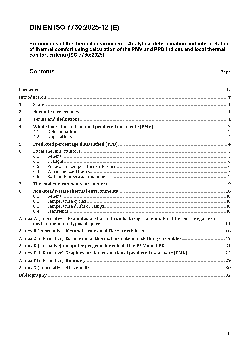 Ergonomie der thermischen Umgebung - Analytische Bestimmung und Interpretation der thermischen Behaglichkeit durch Berechnung des PMV- und des PPD-Indexes und Kriterien der lokalen thermischen Behaglichkeit (ISO 7730:2005); Deutsche Fassung EN ISO 7730:2005, Berichtigungen zu DIN EN ISO 7730:2006-05