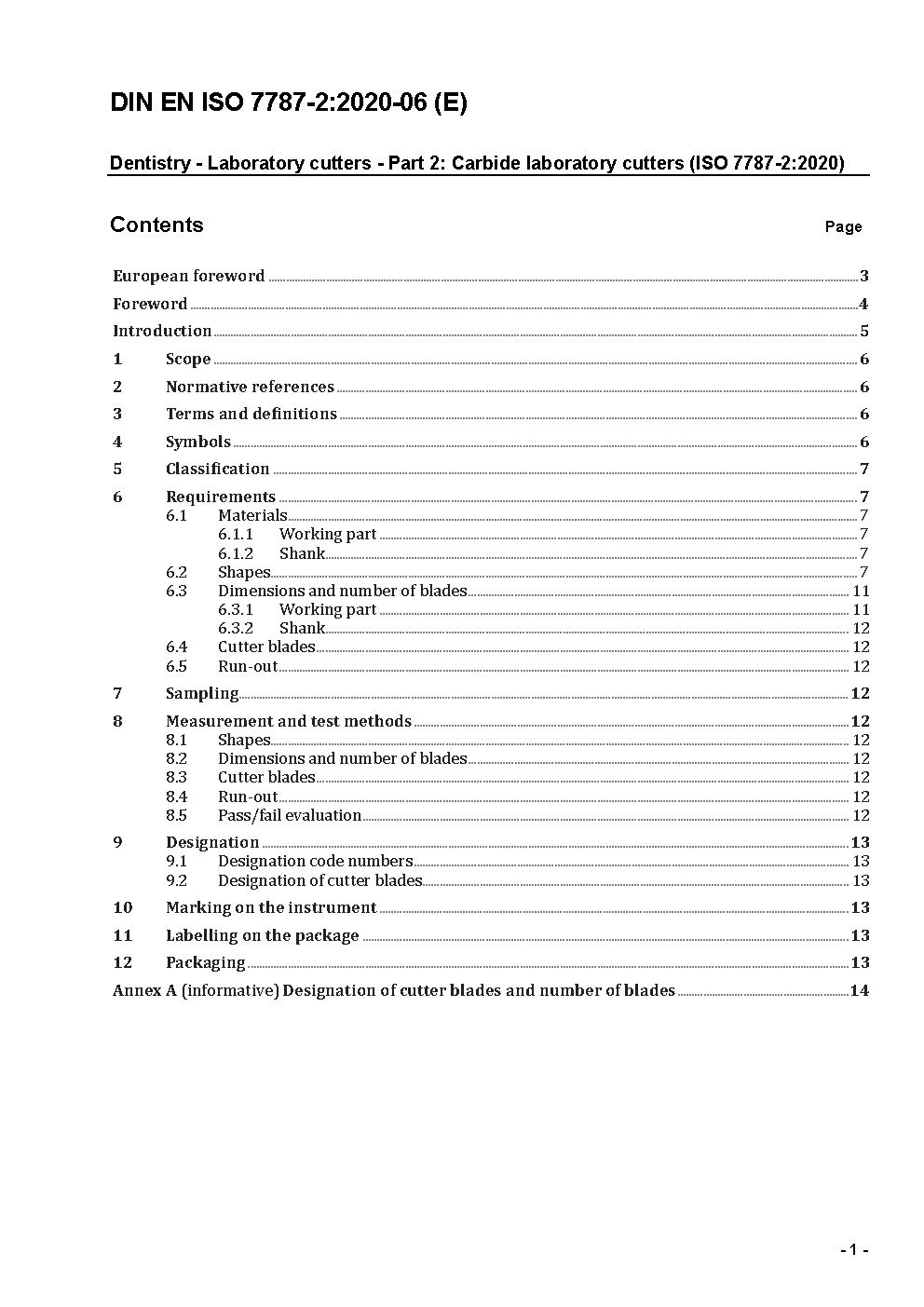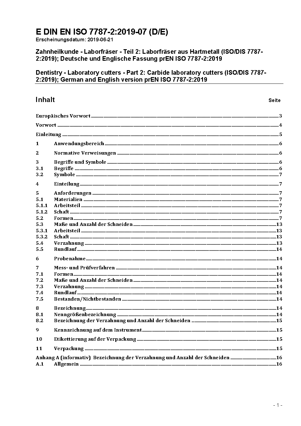 Dental rotary instruments - Cutters - Part 2: Carbide laboratory cutters (ISO 7787-2:2000); German version EN ISO 7787-2:2000