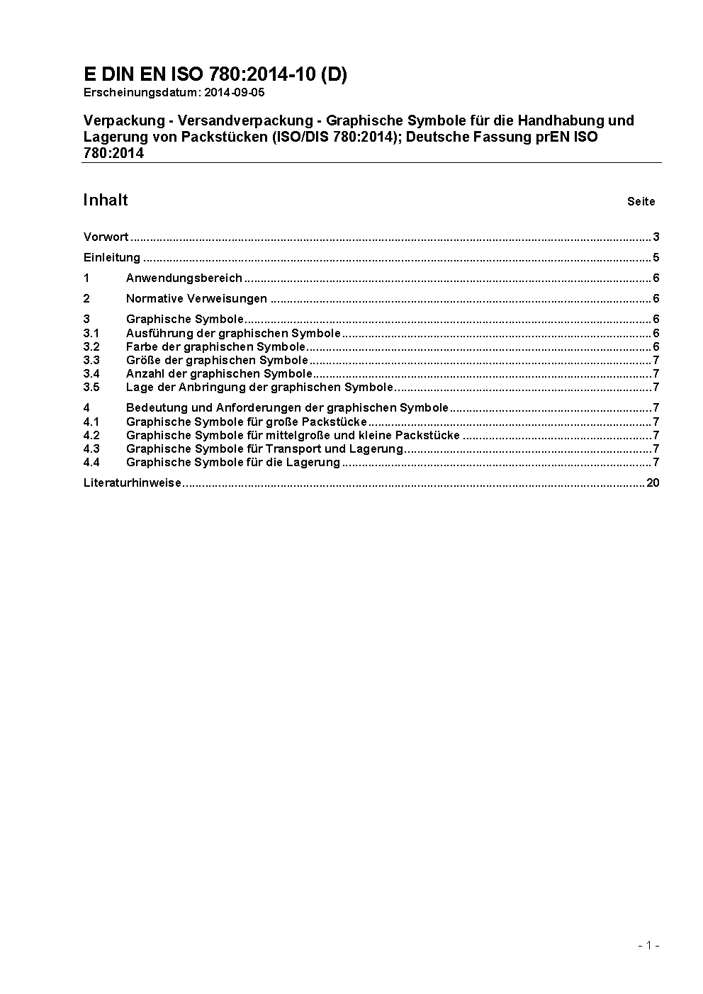 Verpackung - Bildzeichen für die Handhabung von Gütern (ISO 780:1997); Deutsche Fassung EN ISO 780:1999