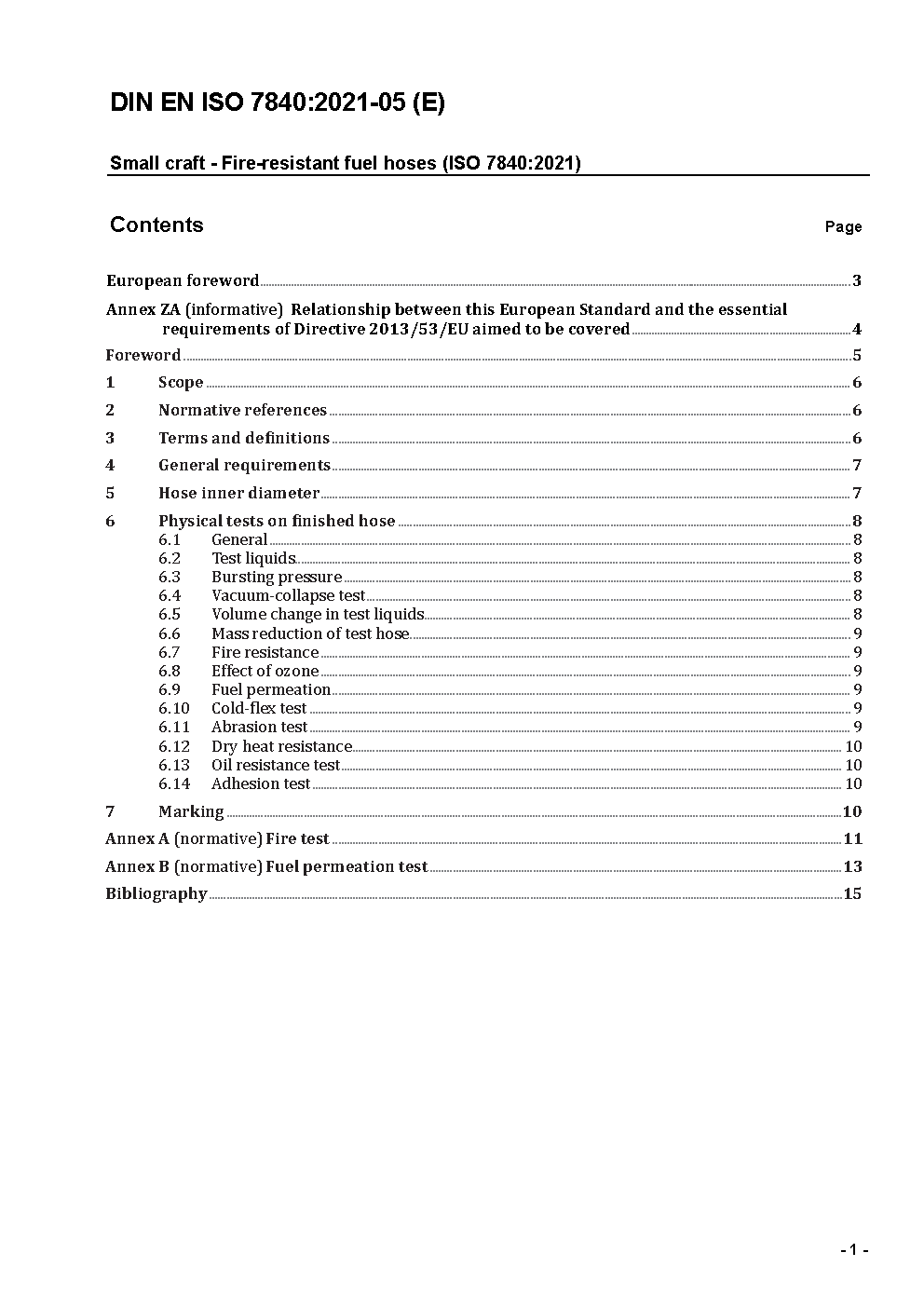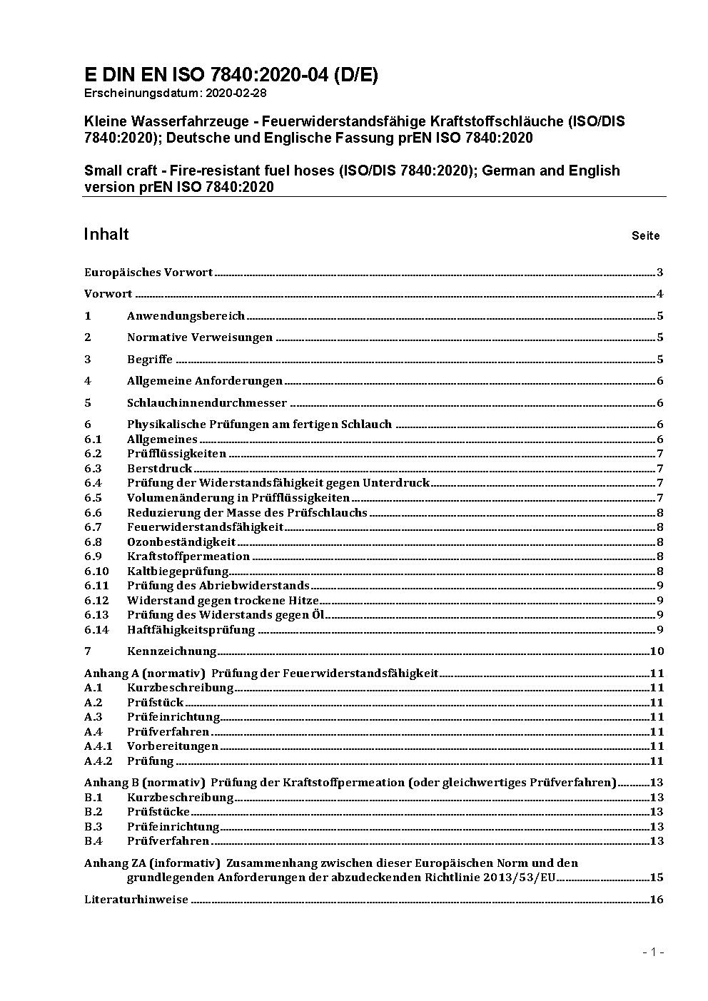 Small craft - Fire resistant fuel hoses (ISO 7840:2004); German version EN ISO 7840:2004