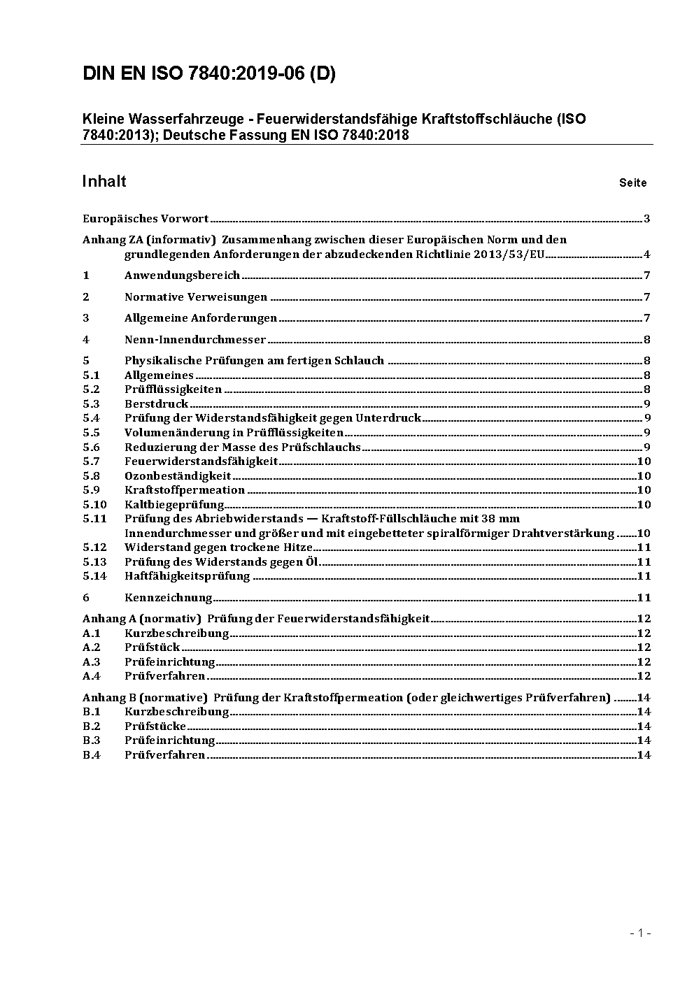 Kleine Wasserfahrzeuge - Feuerwiderstandsfähige Kraftstoffschläuche (ISO 7840:2004); Deutsche Fassung EN ISO 7840:2004
