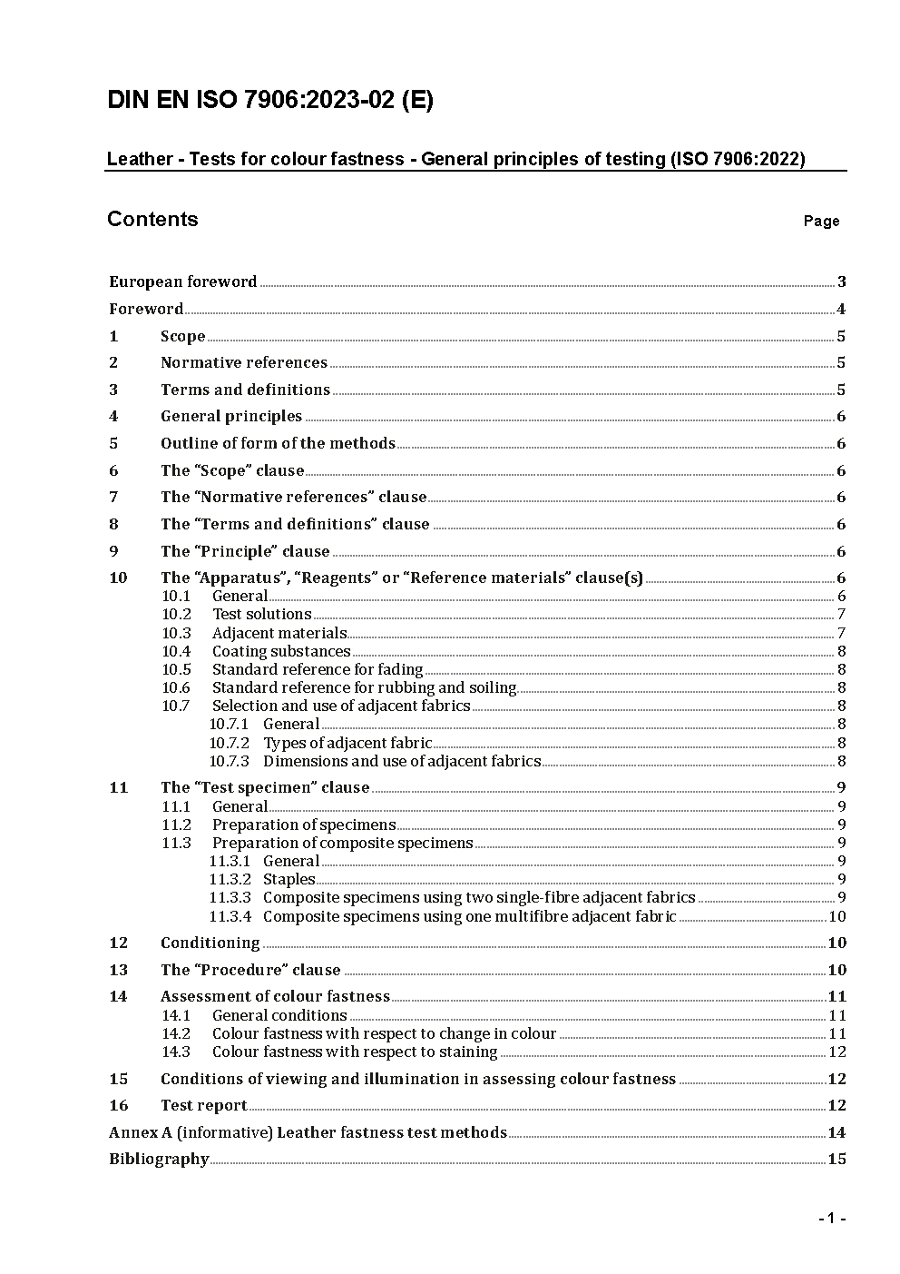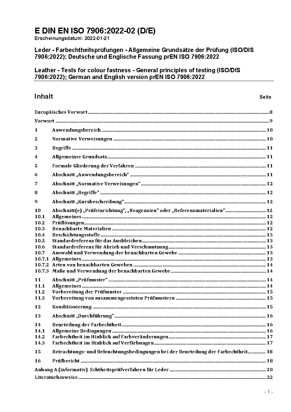 Leder - Farbechtheitsprüfungen - Allgemeine Grundsätze der Prüfung (ISO 7906:2022); Deutsche Fassung EN ISO 7906:2022