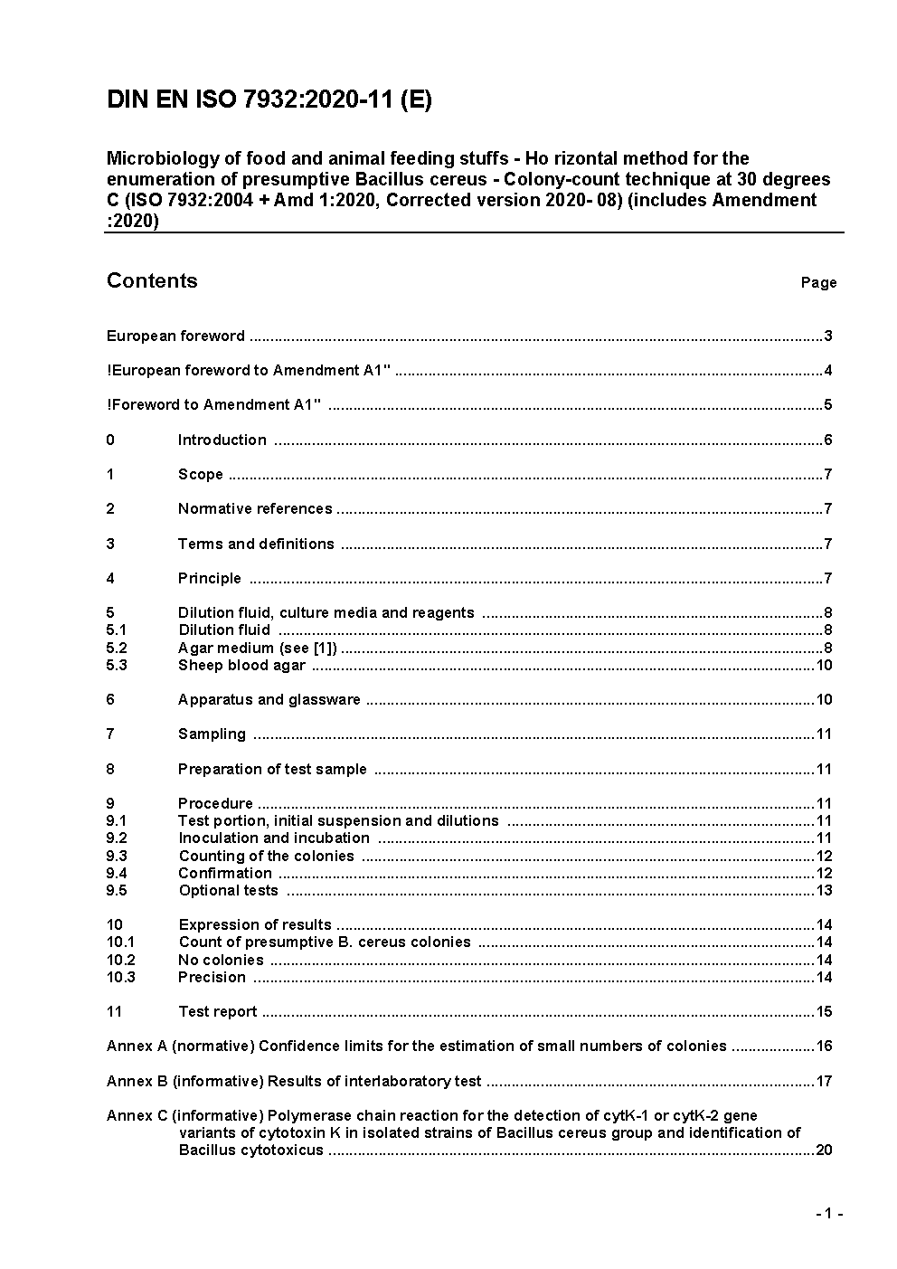 Amendement prévu par DIN EN ISO 7932/A1 (2018-11).