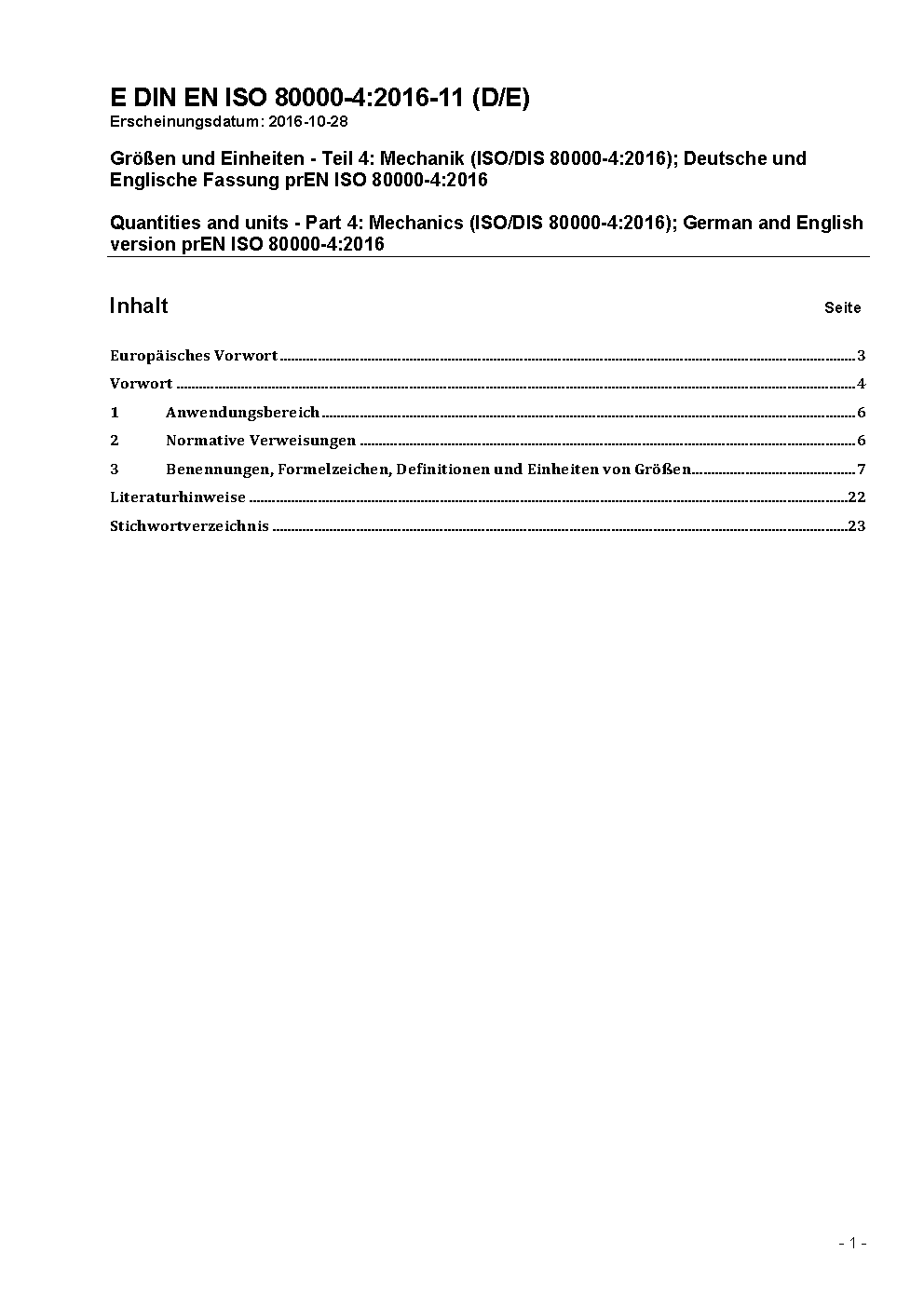 Quantities and units - Part 4: Mechanics (ISO/DIS 80000-4:2016); German and English version prEN ISO 80000-4:2016