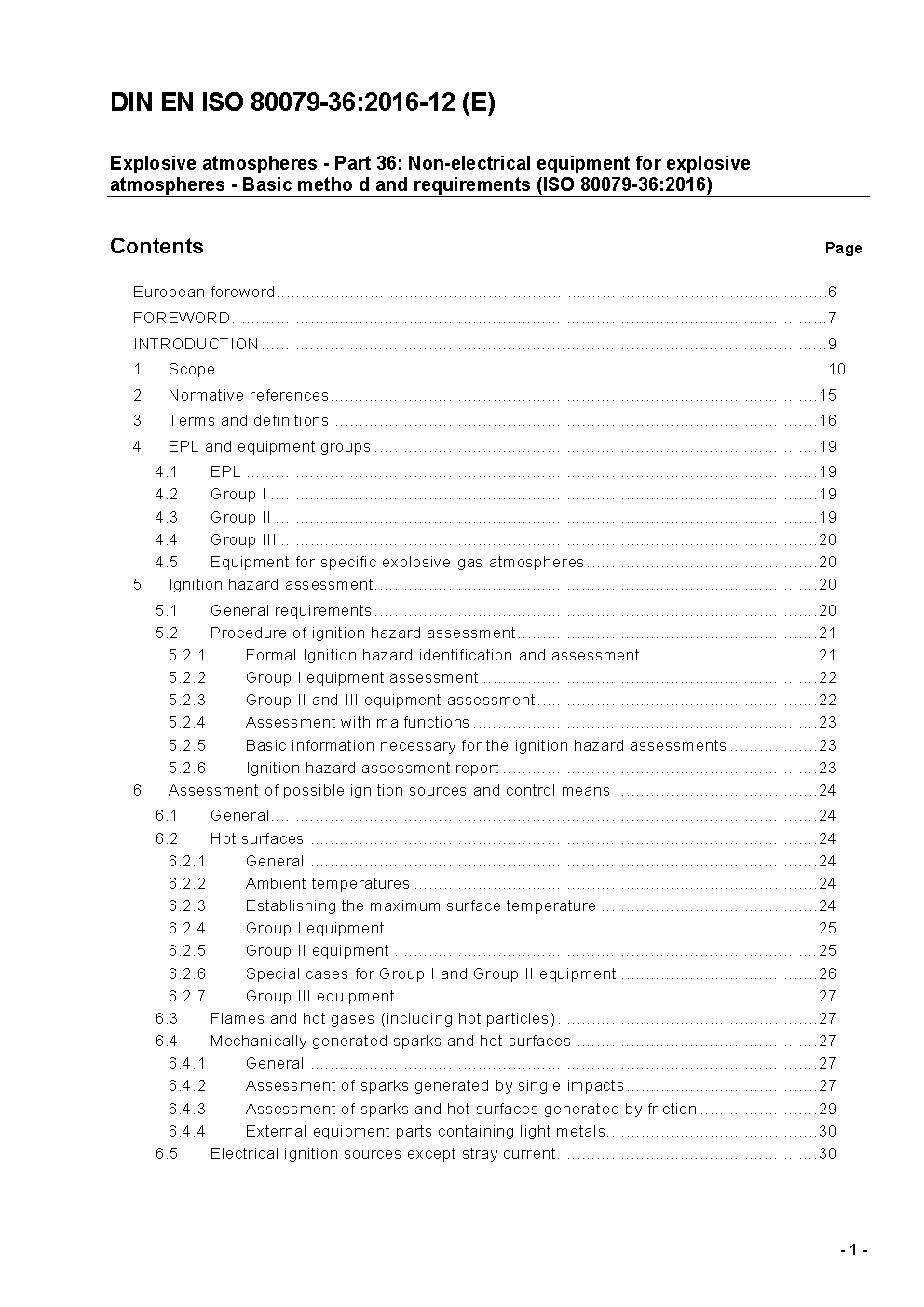 Explosive atmospheres - Part 36: Non-electrical equipment for explosive atmospheres - Basic method and requirements (ISO 80079-36:2016); German version EN ISO 80079-36:2016.