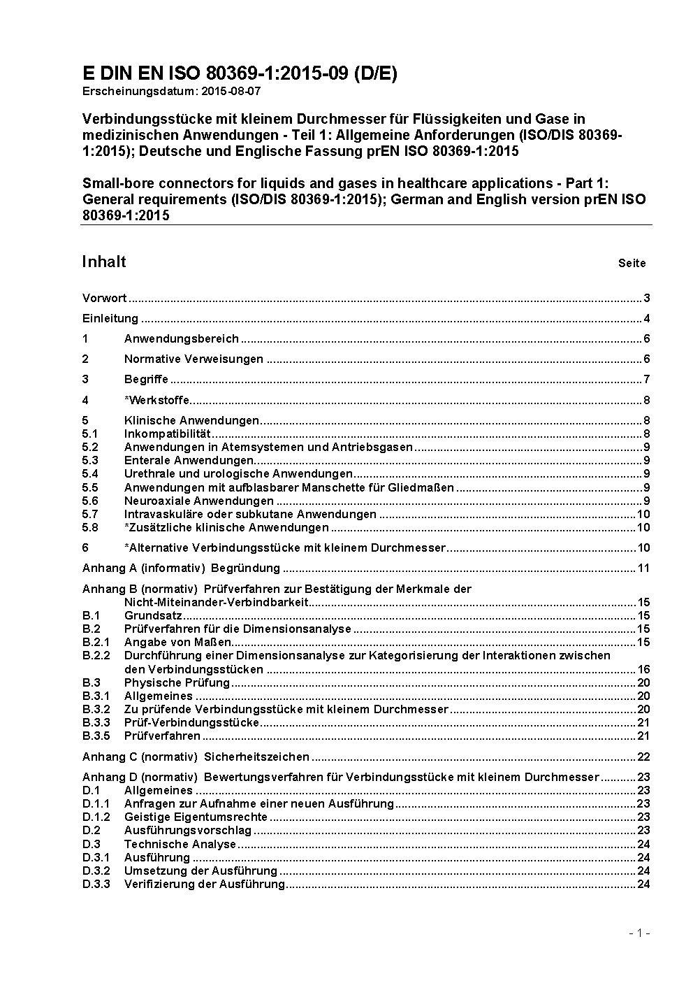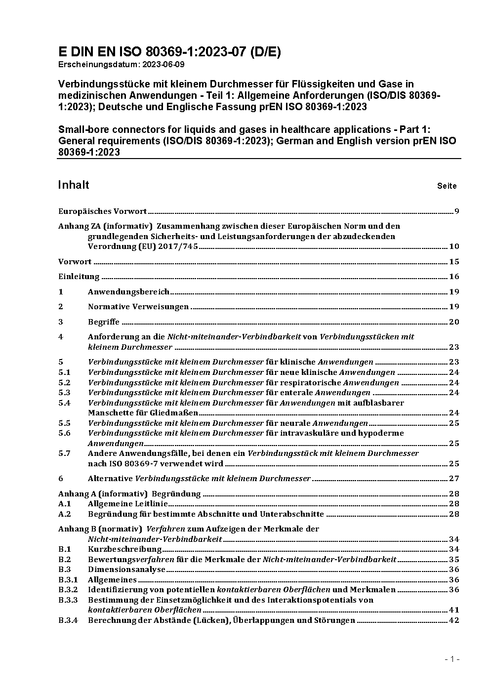 Small-bore connectors for liquids and gases in healthcare applications - Part 1: General requirements (ISO/DIS 80369-1:2023); German and English version prEN ISO 80369-1:2023