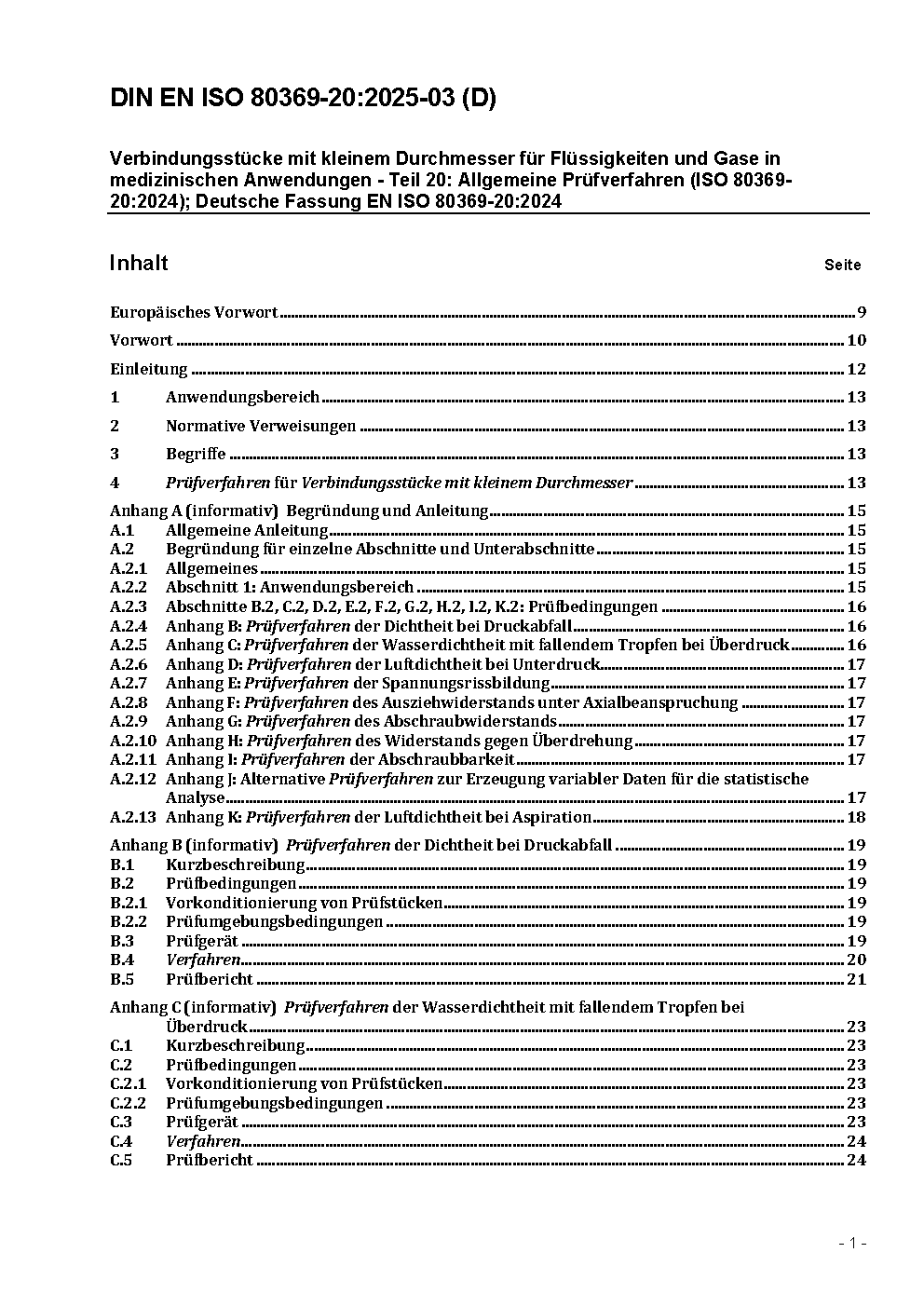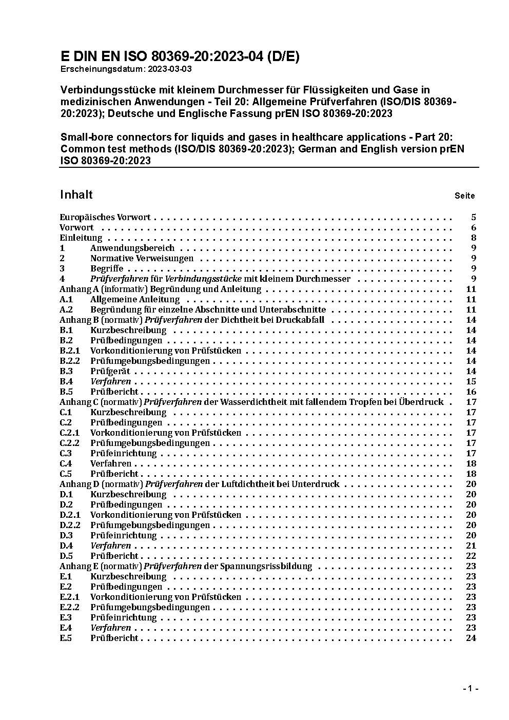 Small-bore connectors for liquids and gases in healthcare applications - Part 20: Common test methods (ISO/DIS 80369-20:2023); German and English version prEN ISO 80369-20:2023