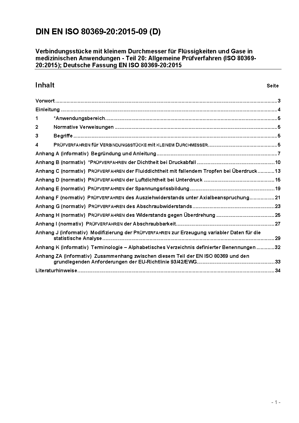 Verbindungsstücke mit kleinem Durchmesser für Flüssigkeiten und Gase in medizinischen Anwendungen - Teil 20: Allgemeine Prüfverfahren (ISO/DIS 80369-20:2023); Deutsche und Englische Fassung prEN ISO 80369-20:2023