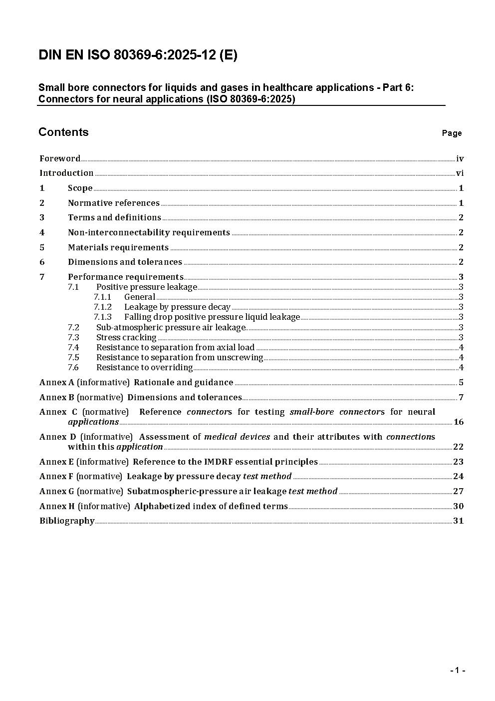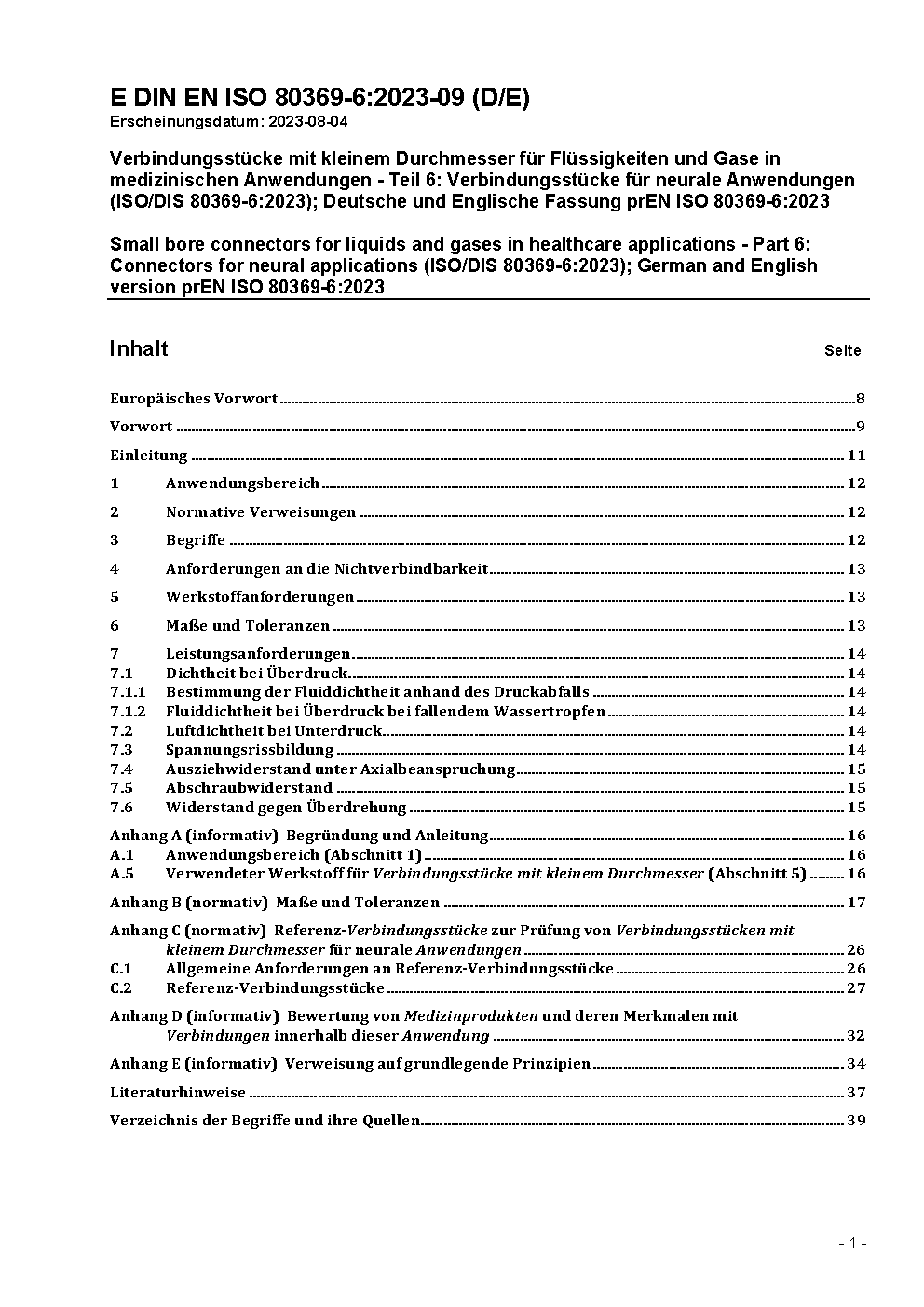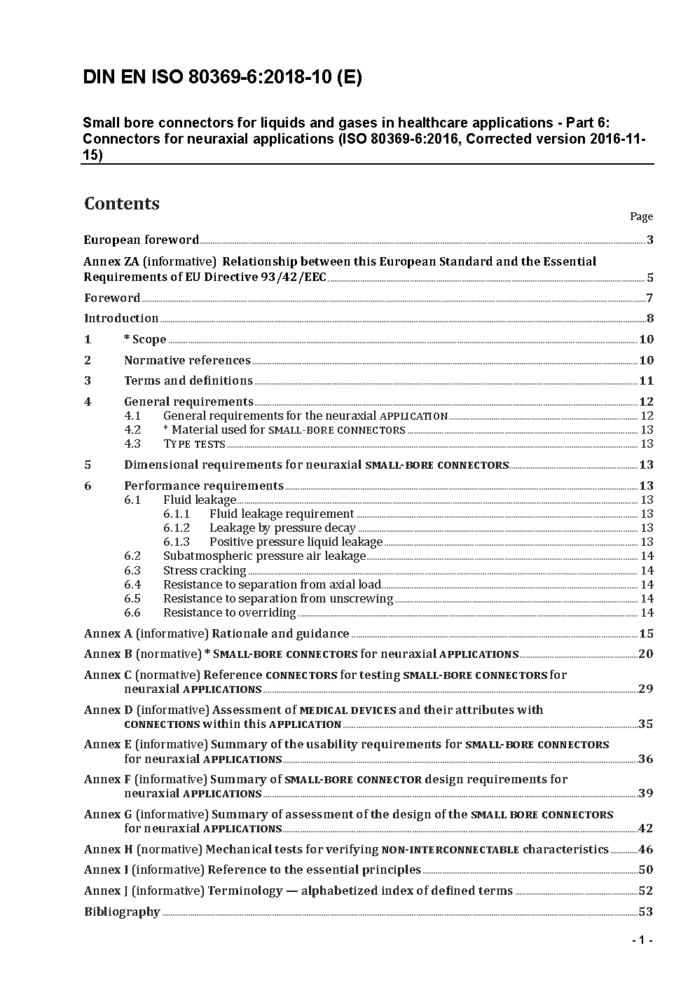 Verbindungsstücke mit kleinem Durchmesser für Flüssigkeiten und Gase in medizinischen Anwendungen - Teil 6: Verbindungsstücke für neuroaxiale Anwendungen (ISO 80369-6:2016, korrigierte Fassung 2016-11-15); Deutsche Fassung EN ISO 80369-6:2016
