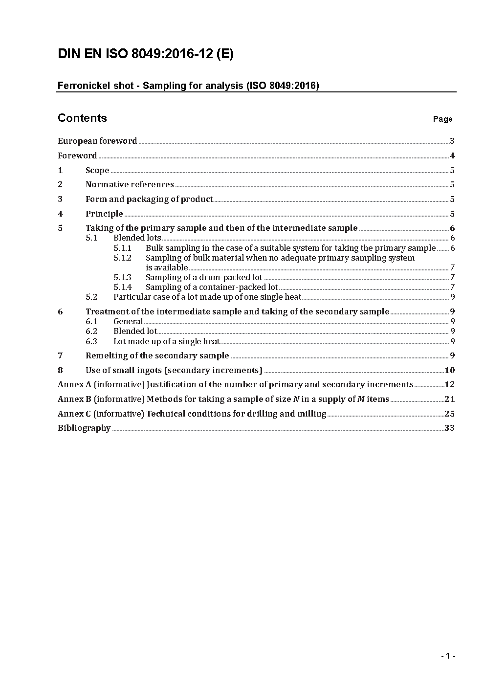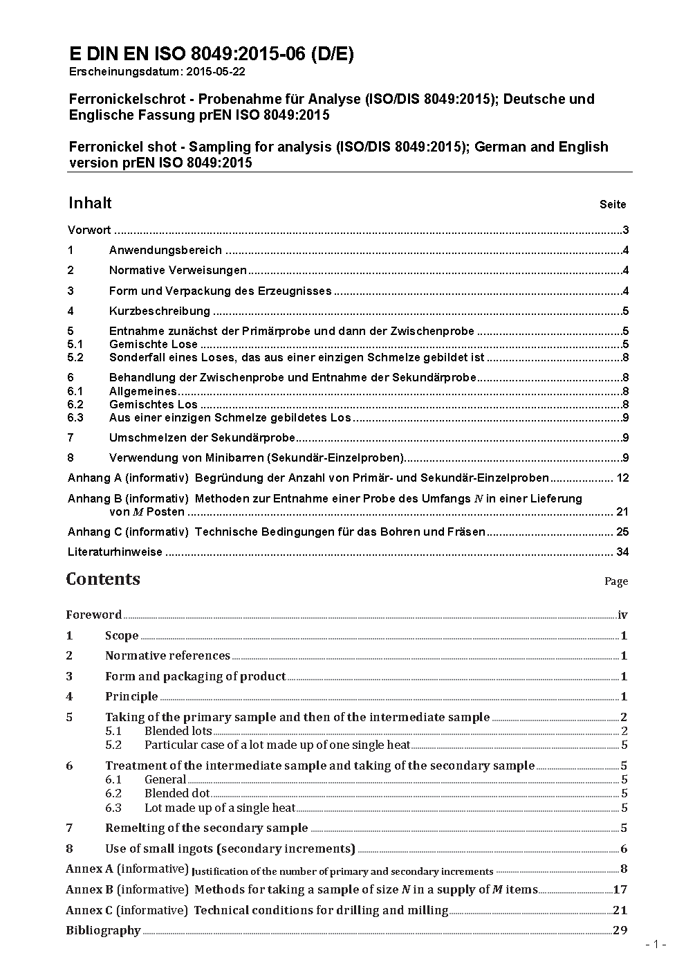 Ferronickel shot - Sampling for analysis (ISO/DIS 8049:2015); German and English version prEN ISO 8049:2015
