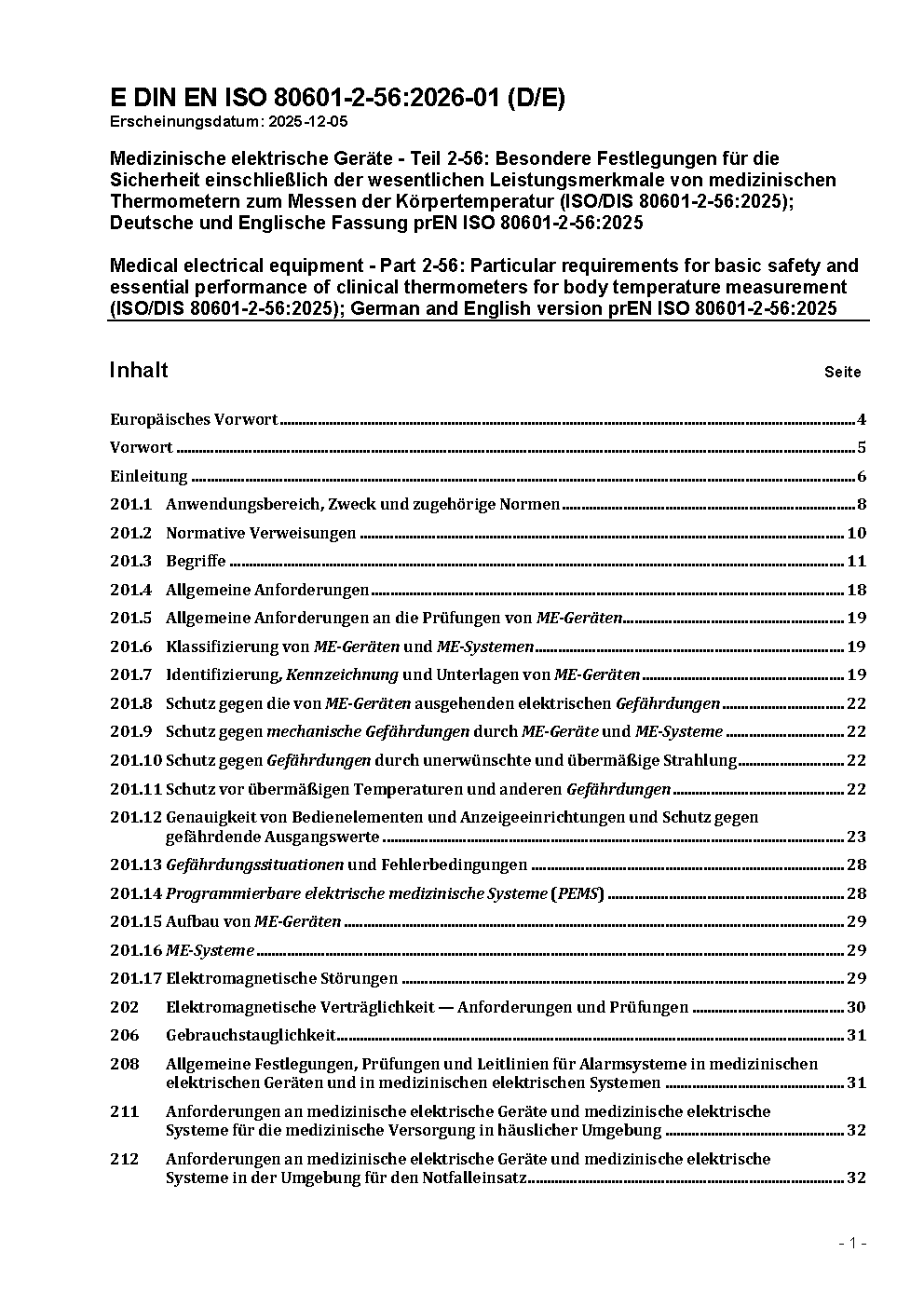 Prévu comme amendement à DIN EN ISO 80601-2-56 (2018-02).