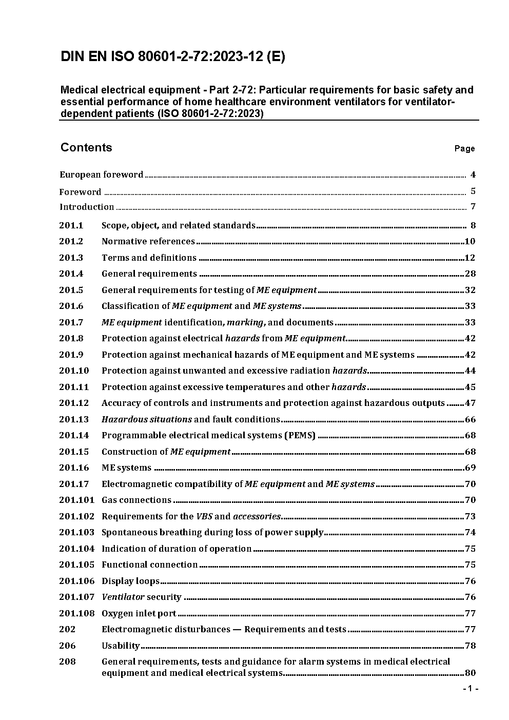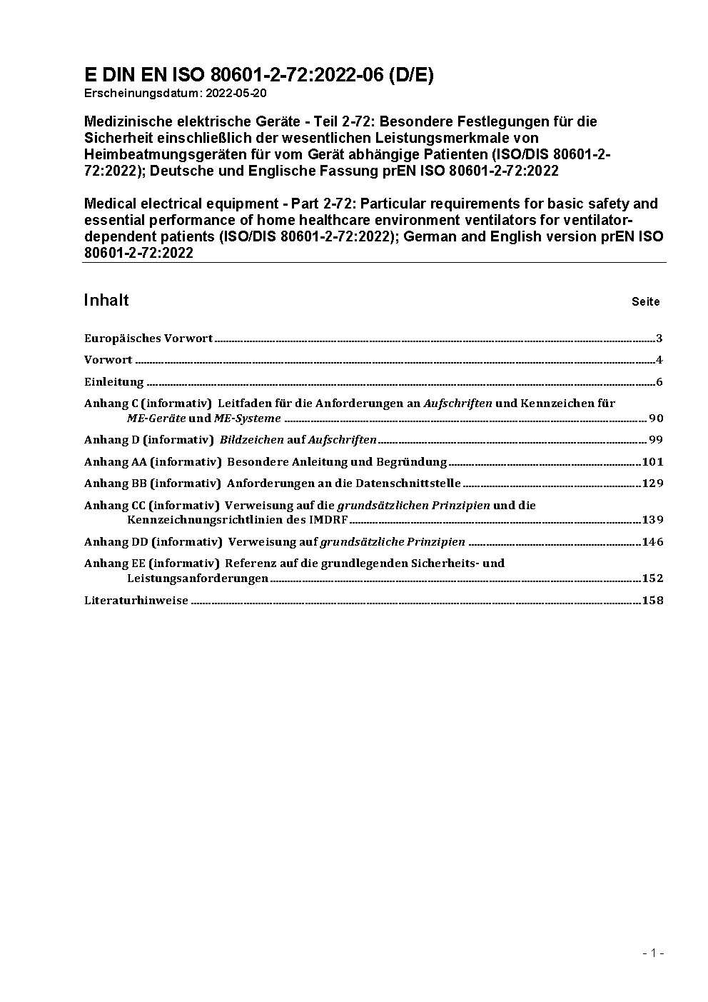 Medical electrical equipment - Part 2-72: Particular requirements for basic safety and essential performance of home healthcare environment ventilators for ventilator-dependent patients (ISO/DIS 80601-2-72:2022); German and English version prEN ISO 80601-2-72:2022