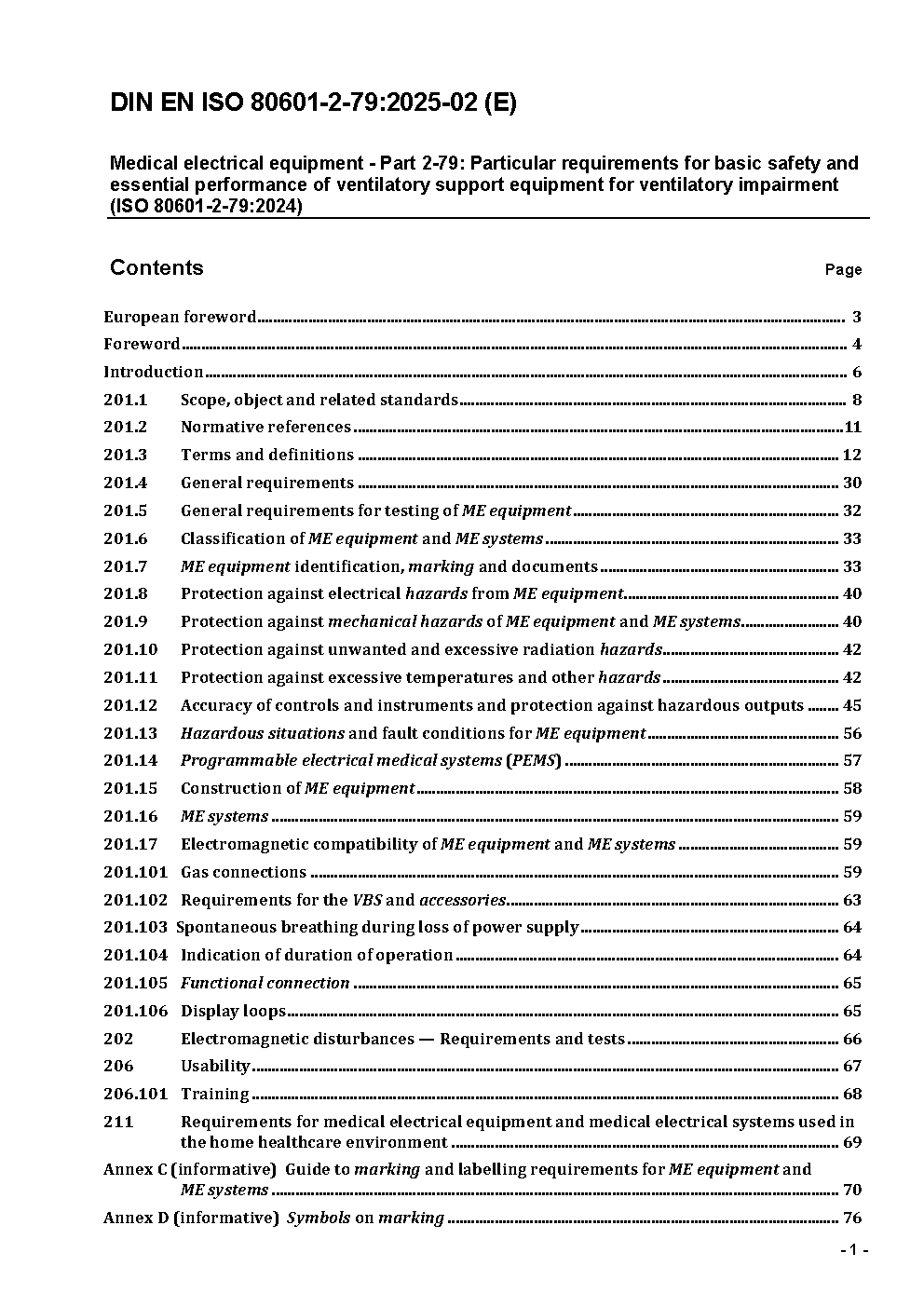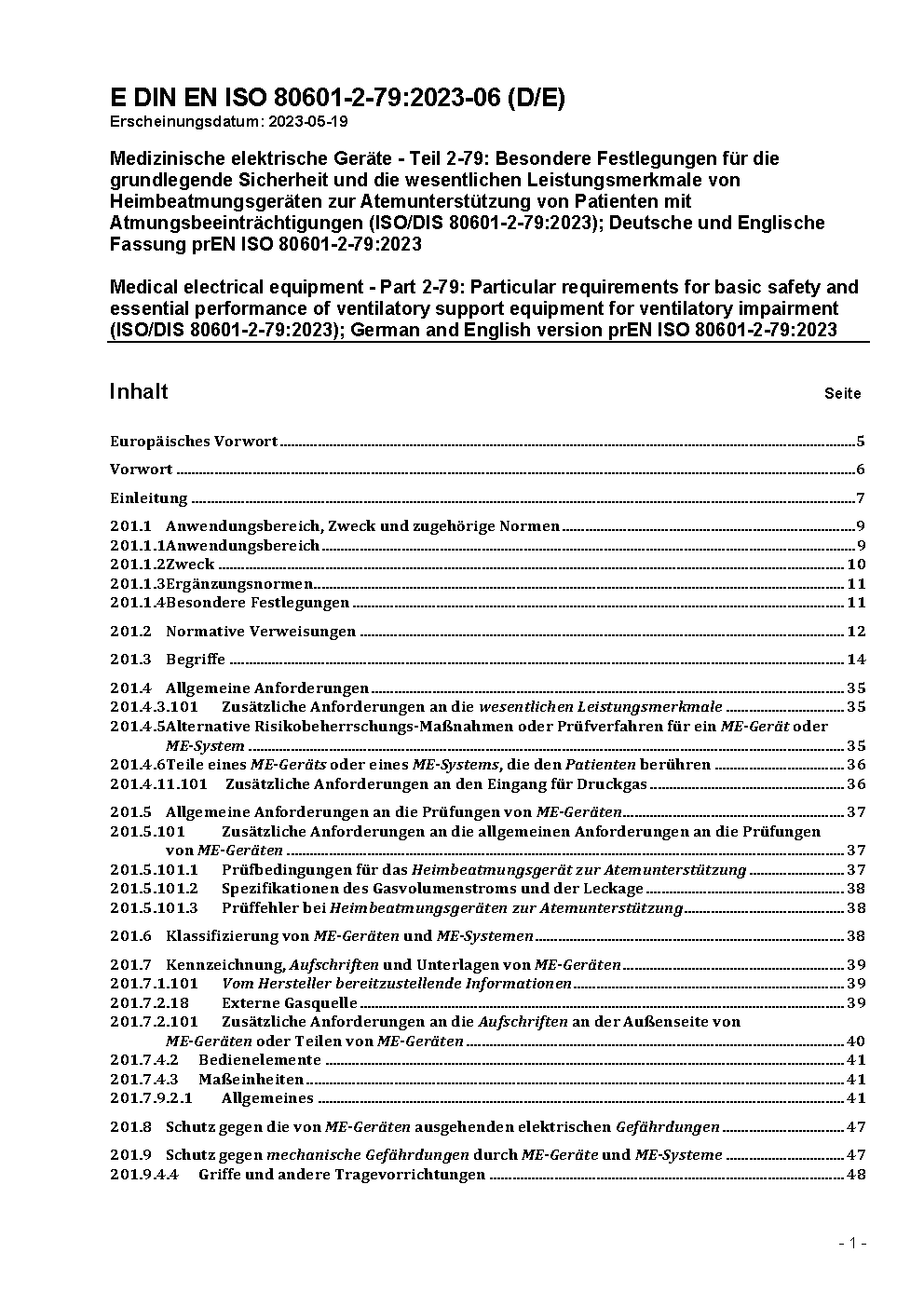 Medical electrical equipment - Part 2-79: Particular requirements for basic safety and essential performance of ventilatory support equipment for ventilatory impairment (ISO/DIS 80601-2-79:2023); German and English version prEN ISO 80601-2-79:2023