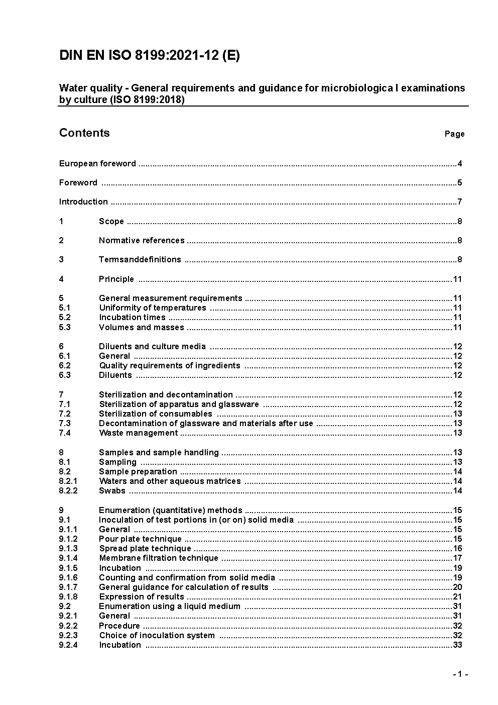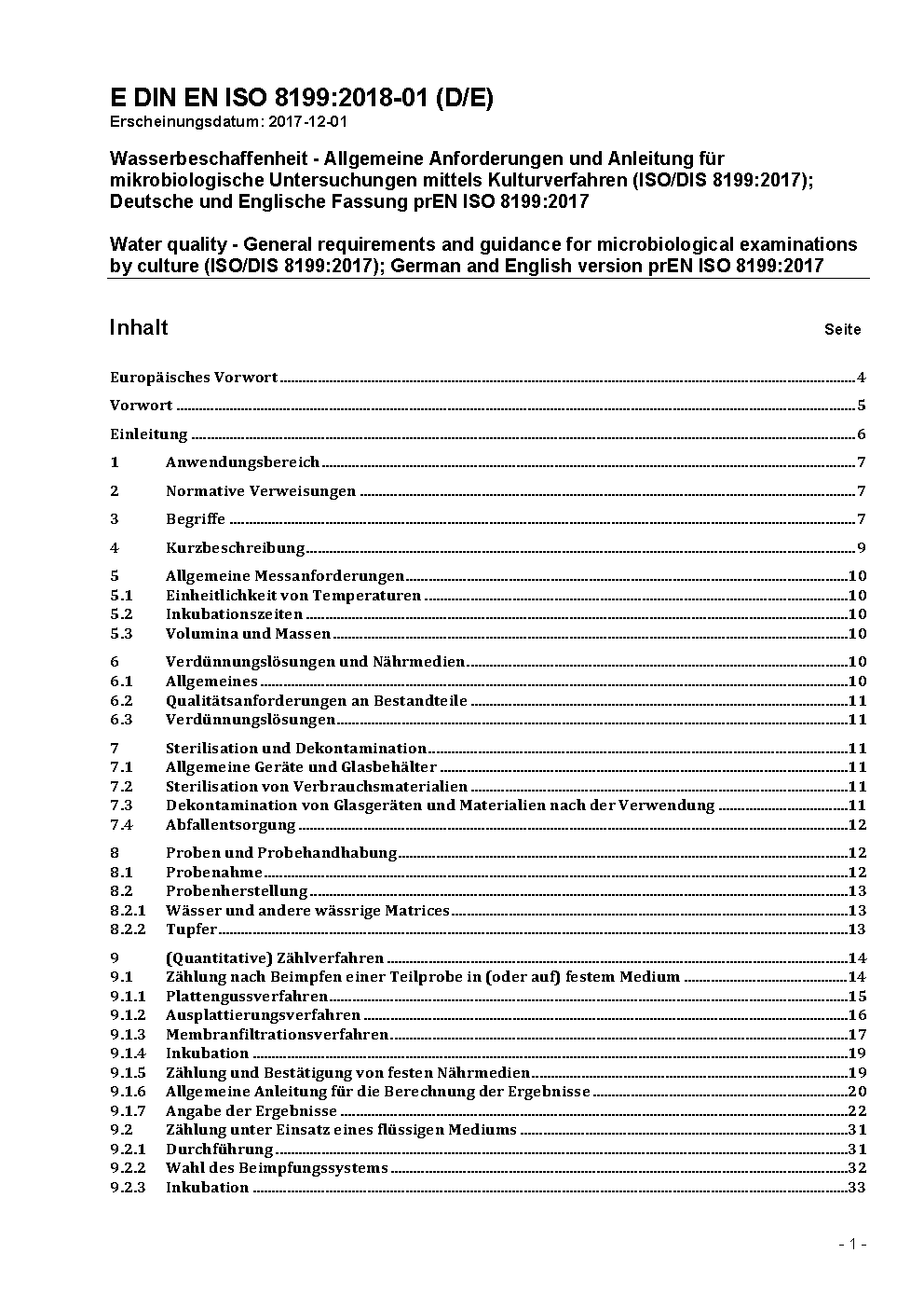 Wasserbeschaffenheit - Allgemeine Anforderungen und Anleitung für mikrobiologische Untersuchungen mittels Kulturverfahren (ISO 8199:2018); Deutsche Fassung EN ISO 8199:2018