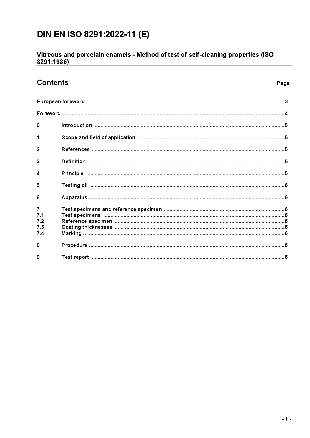 Vitreous and porcelain enamels - Method of test of self-cleaning properties (ISO 8291:1986); German and English version prEN ISO 8291:2022
